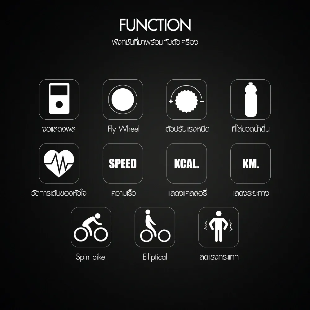- มี 2 ฟังก์ชั่น ในเครื่องเดียว ระบบ Spin bike และ Elliptical