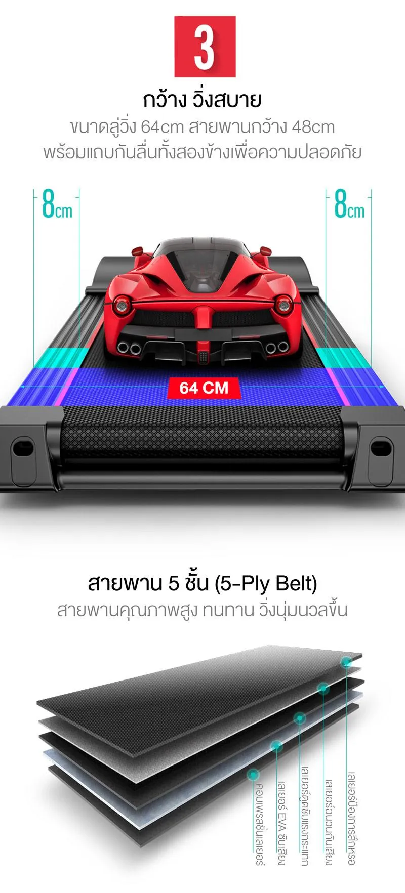 • ฐานลู่วิ่ง 2 ชั้น รองรับแรงกระแทกเพิ่มขึ้น