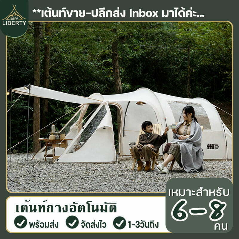 F430 2นอน1โถงเต็นท์ TANXIANZHE 【6-8 คน】 เต็นท์อุโมงค์ที่สวยงาม อุปกรณ์ตั้งแคมป์กลางแจ้ง ทริปสำหรับครอบครัว ทัวร์ขับรถด้วยตนเอง เต็นท์พับแบบพกพา