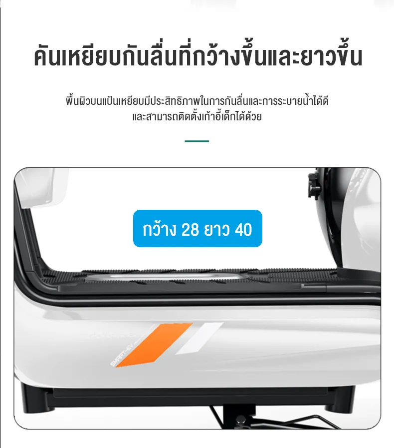คันเหยียบกันลื่นที่กว้างขึ้นและยาวขึ้น และสามารถติดตั้งเก้าอี้เด็กได้ด้วย