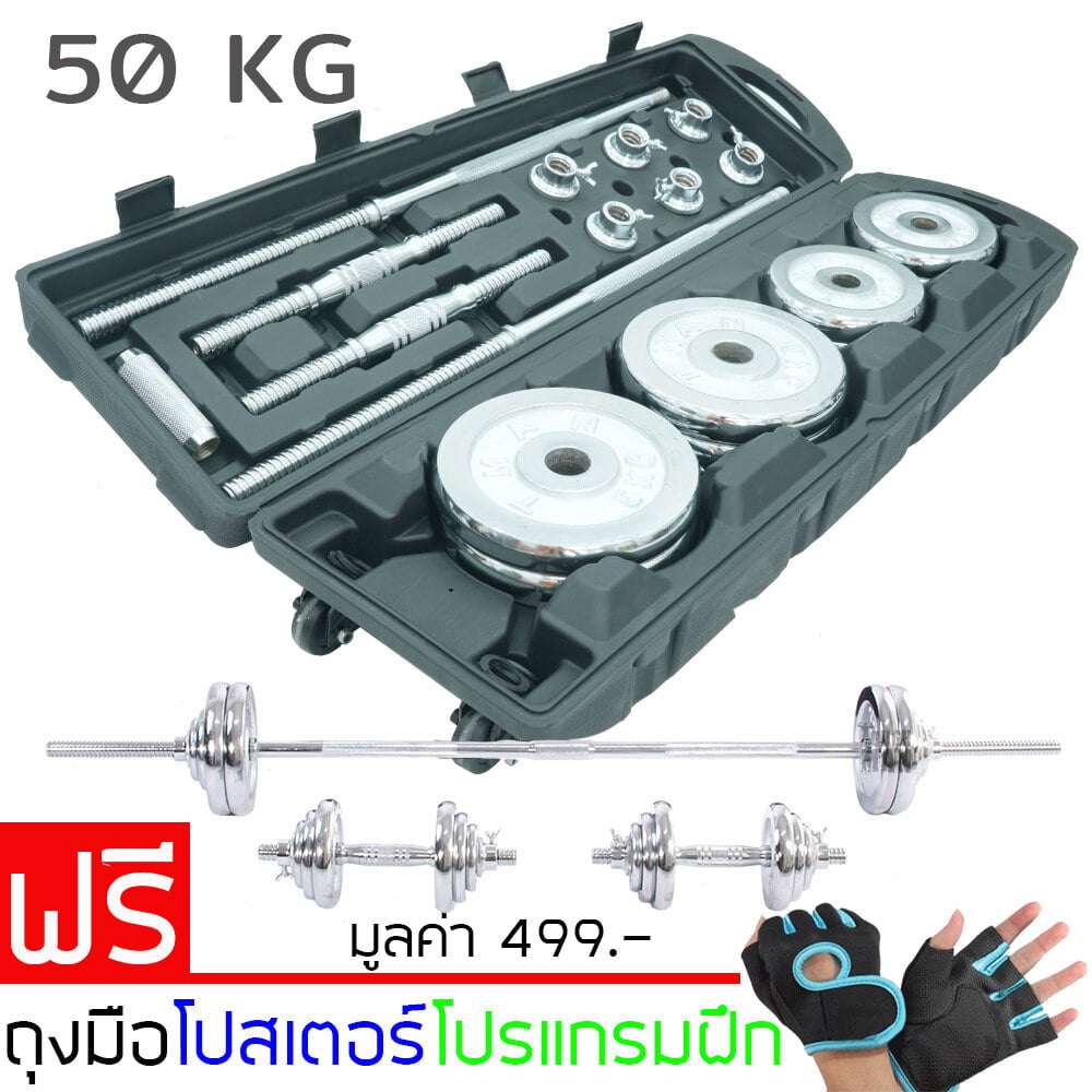 F458 TOUGHMAN ดัมเบล และบาร์เบล โครเมี่ยม ปรับน้ำหนัก 50 กิโลกรัม พร้อมกล่อง ฟรี!! ถุงมือ โปสเตอร์ โปรแกรมฝึก