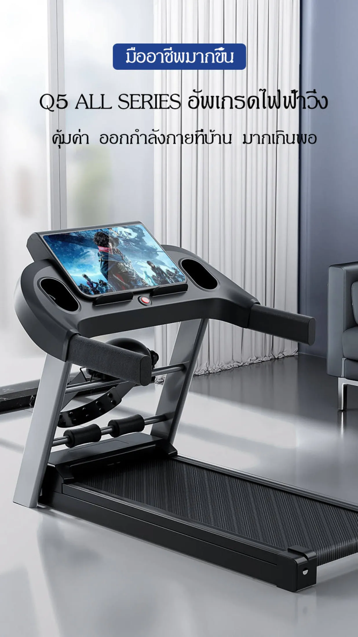 รายละเอียดสินค้า ลู่วิ่งไฟฟ้า ลู่วิ่งฟิตเนส เครื่องออกกำลังกาย อุปกรณ์ออกกำลังกาย รองรับกำลังมอเตอร์ สูงสุงได้ถึง 3.5 HP ลู่วิ่ง Treadmill รุ่น Q5L