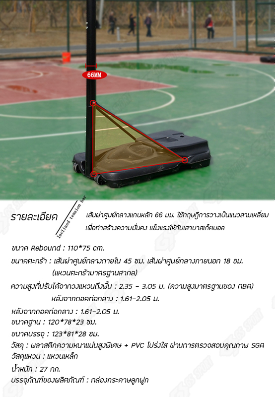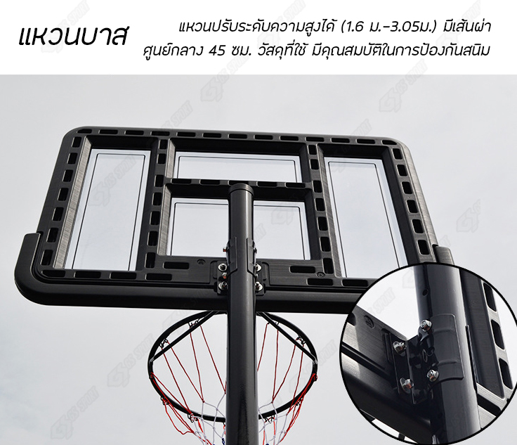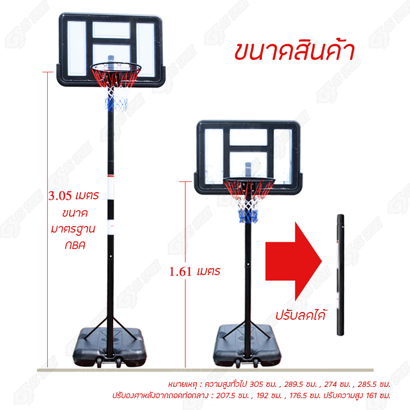 - ความสูงจากฐานถึงห่วงบาส : 1.61เมตรถึง 3.05 เมตร
