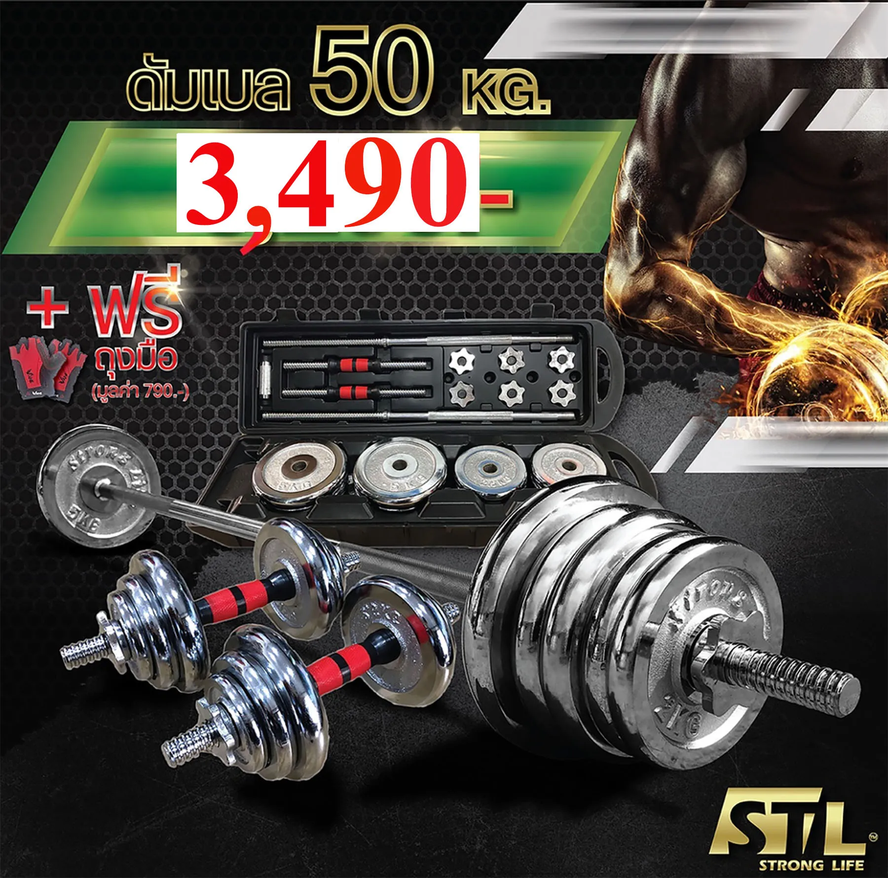 - แถมฟรี ถุงมือยกดัมเบล 1 คู่ (คละสี-ไซค์ ไม่สามารถเลือกขนาดได้)