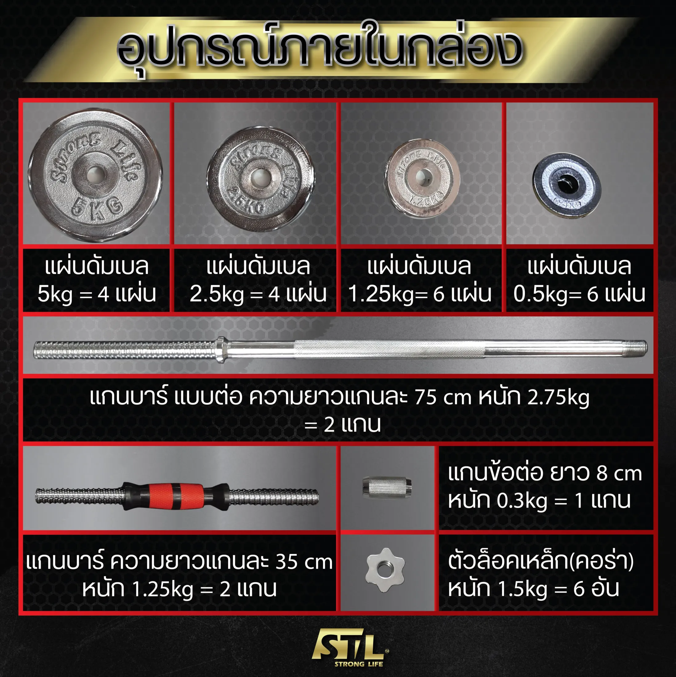 - แผ่นดัมเบล 1.25 kg. = 6 แผ่น