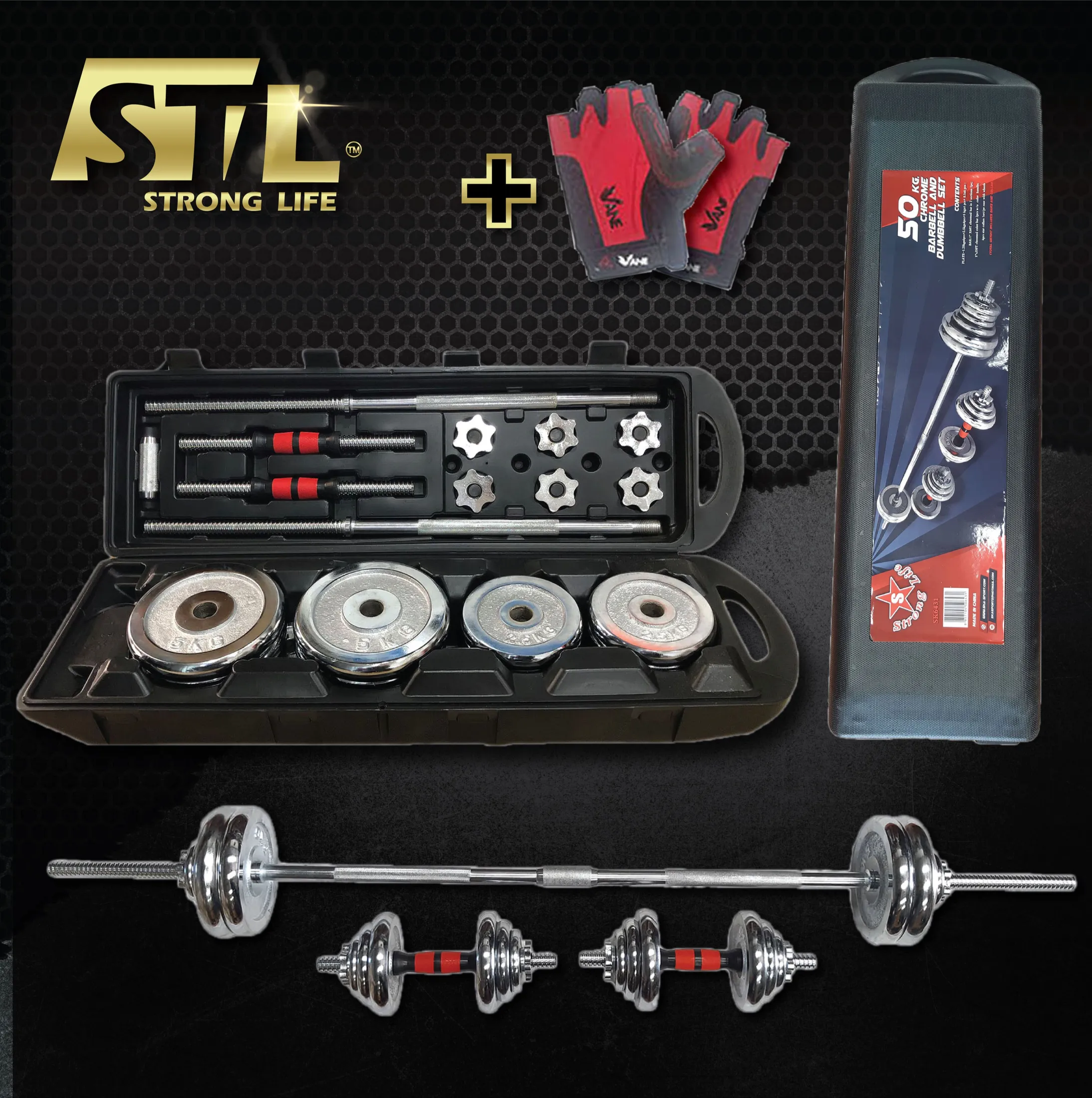 F466 SKA ดัมเบล 50 Kg ชุดยกน้ำหนัก โครเมี่ยม พร้อมกล่อง (Chromed Barbell Set 50 kg) แถมฟรีถุงมือ มูลค่า 790 บาท