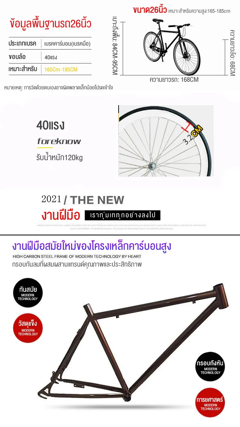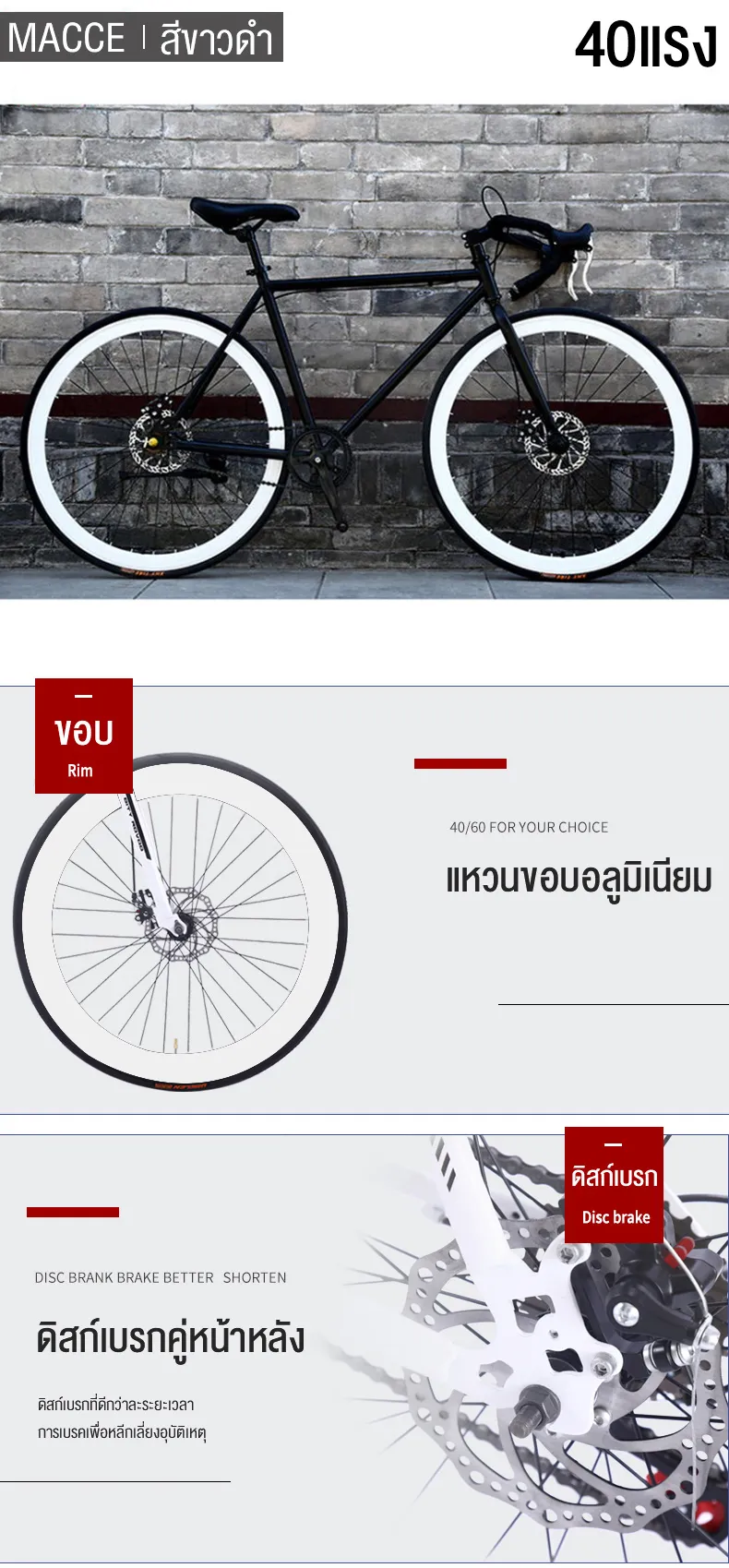 F476 MACCE fixed gear bike จักรยานเสือมอบ จักรยาน จักรยานเสือหมอบ ดิสเบรคสำหรับแข่งรถ 26 นิ้ว 700C จักรยานเสือหมอบที่แข็งแกร่งที่สุด 17 กก. bicycle for man จักรยานผู้ใหญ่