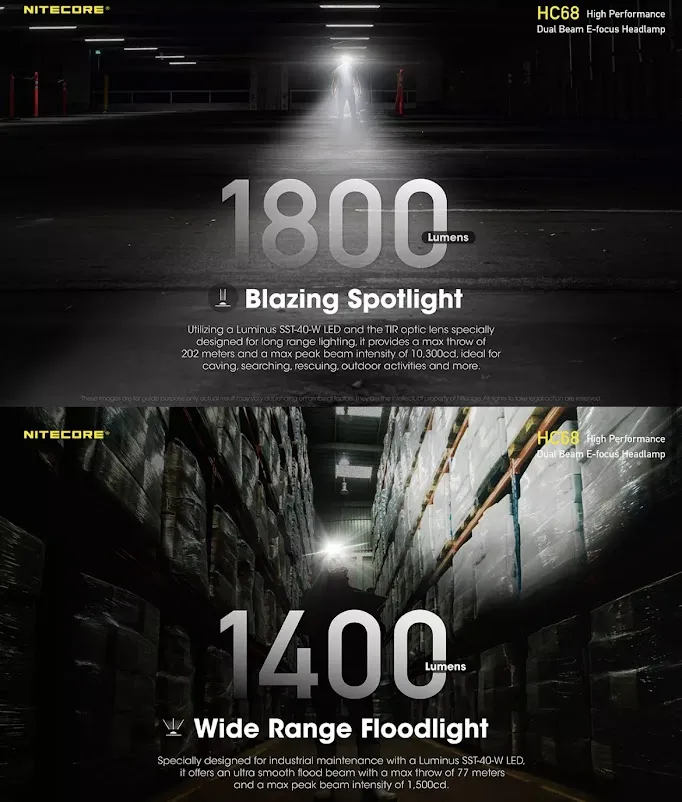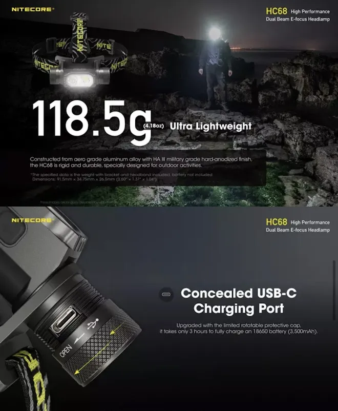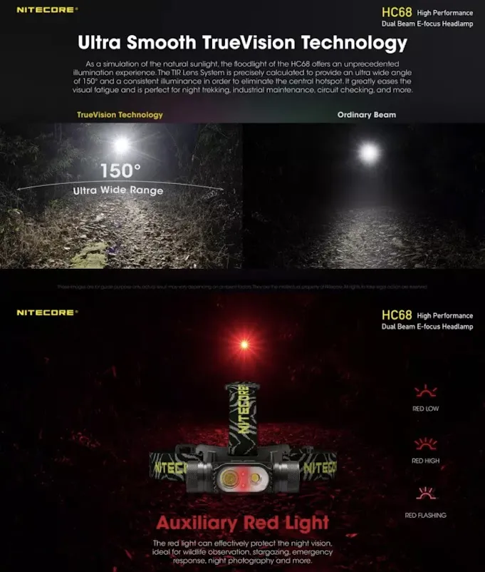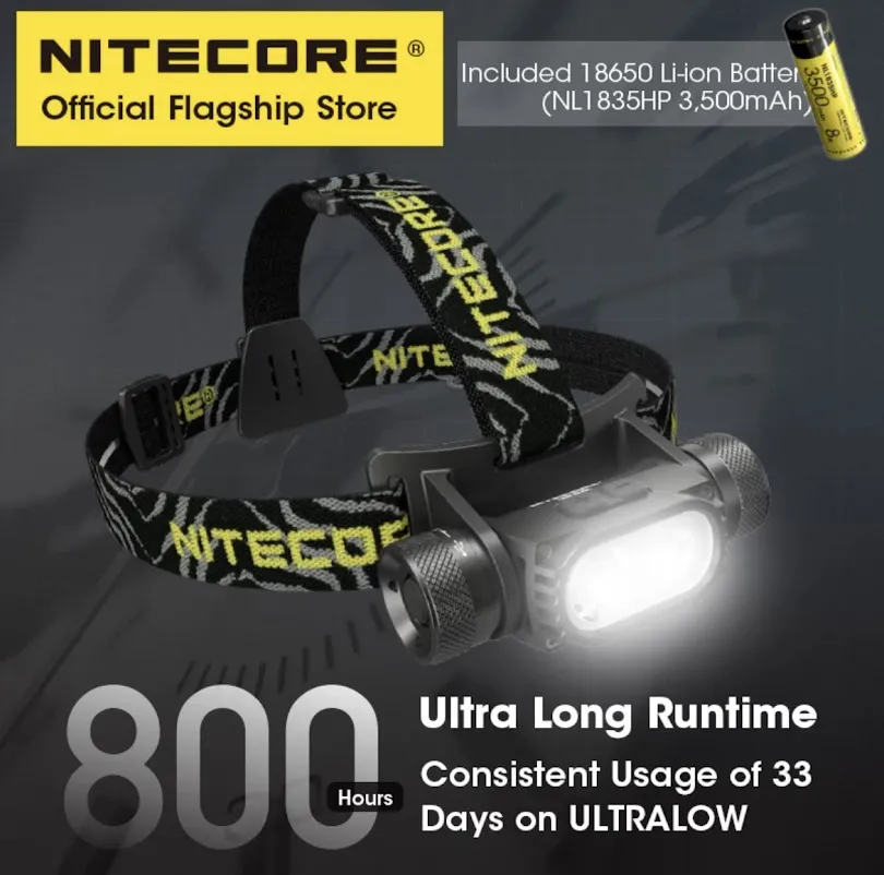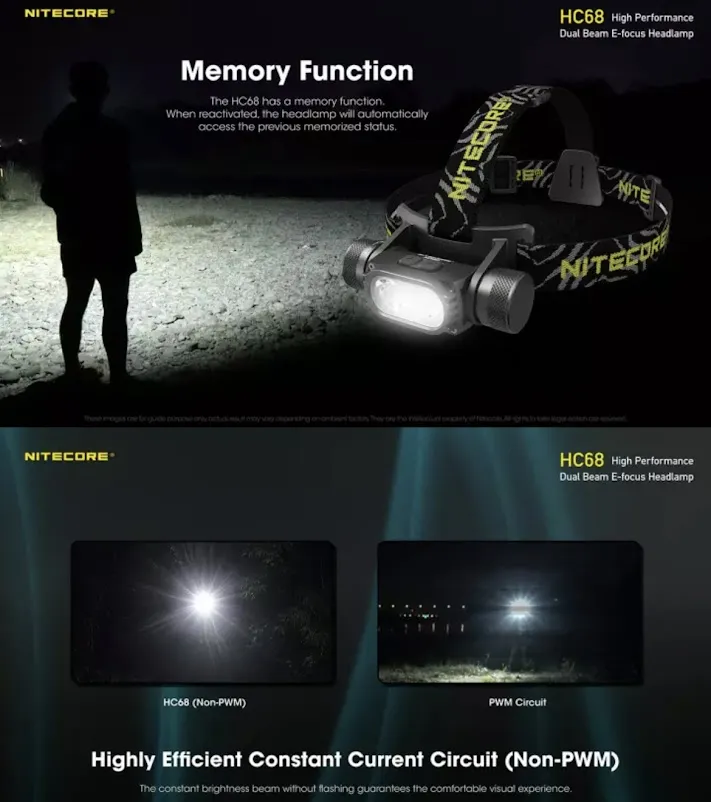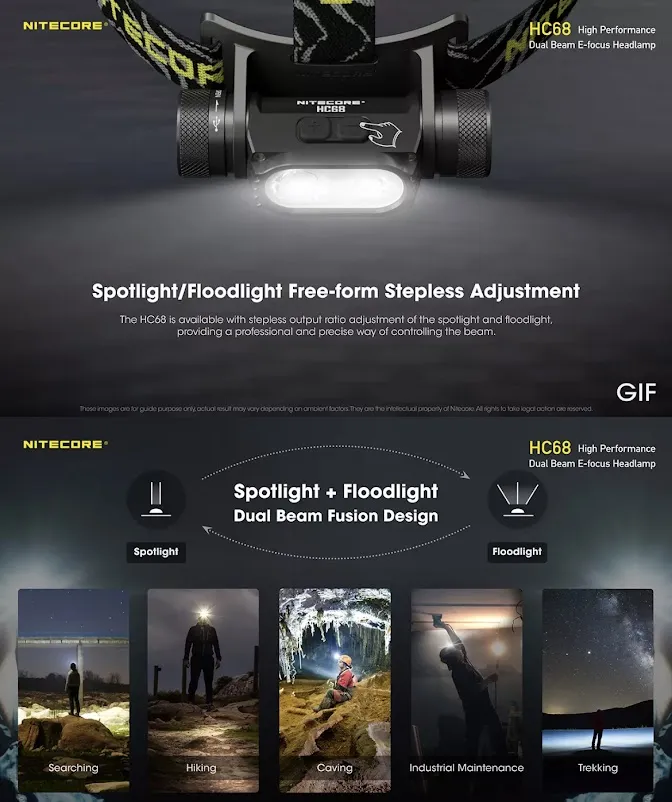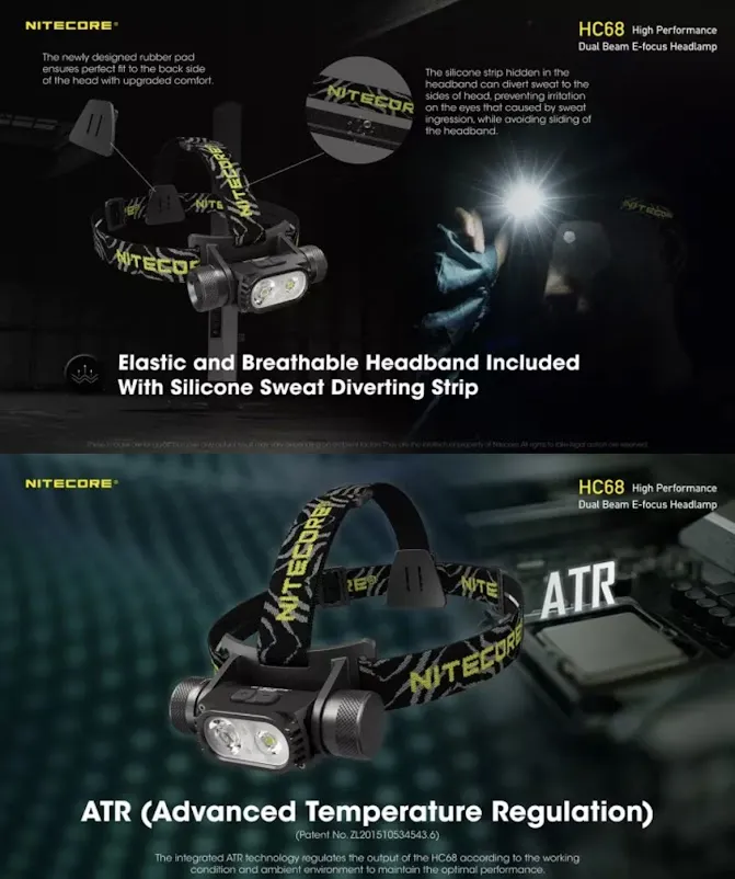 F482 พร้อมส่ง NITECORE HC68 LED ไฟหน้า 2000Lumen ไฟหน้าแบบชาร์จไฟได้ปรับ Spotlight Floodlight Dual Beam 18650 Li-Ionแบตเตอรี่