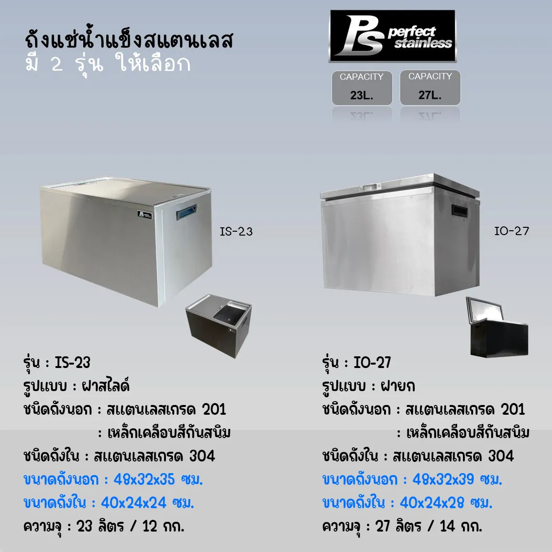 F496 ถังน้ำแข็ง สแตนเลส ถังน้ำแข็งสแตนเลส ถังเก็บน้ำแข็งแบบฝายก ถังเก็บน้ำแข็งแบบฝาสไลด์ Perfect Stainless ขนาด 23-27 ลิตร