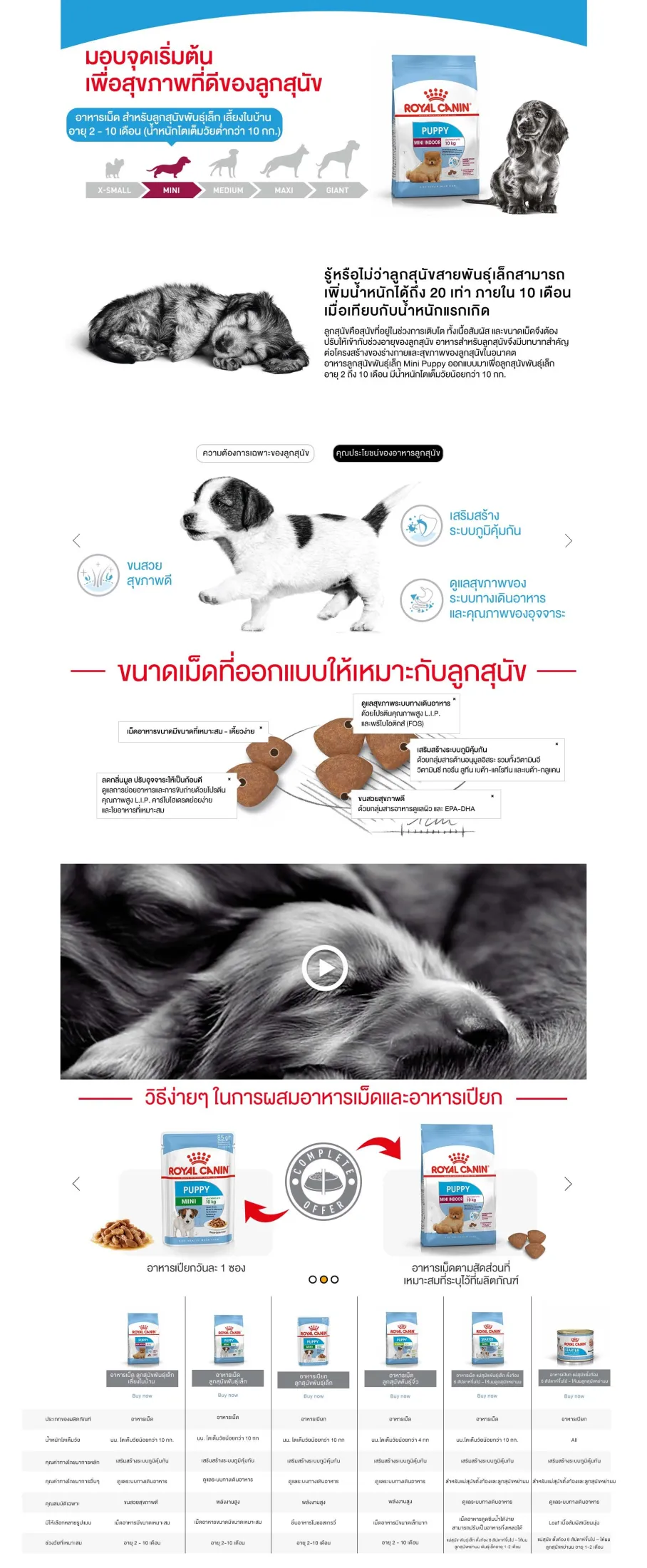 - สำหรับสุนัขขนาดเล็ก (น้ำหนักโตเต็มวัยต่ำกว่า 10 กก.)