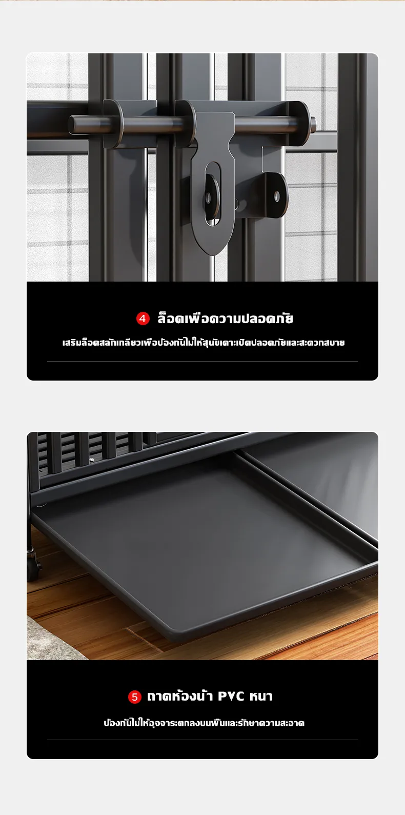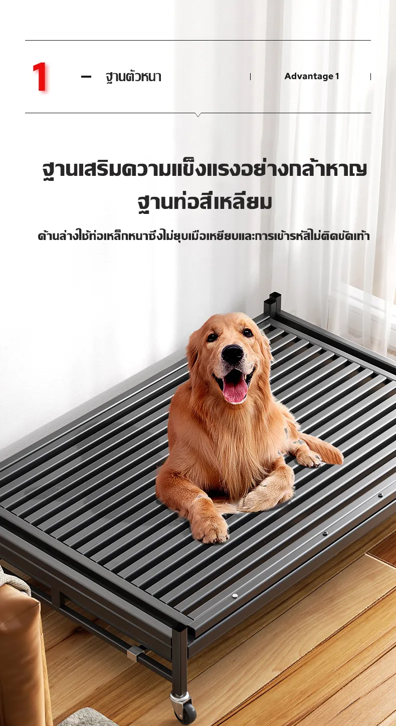 F524 [Shipping from Bangkok, fast delivery]Large square tube dog cage, durable, pet cage, foldable dog cage with plastic tray, suitable for dogs, cats