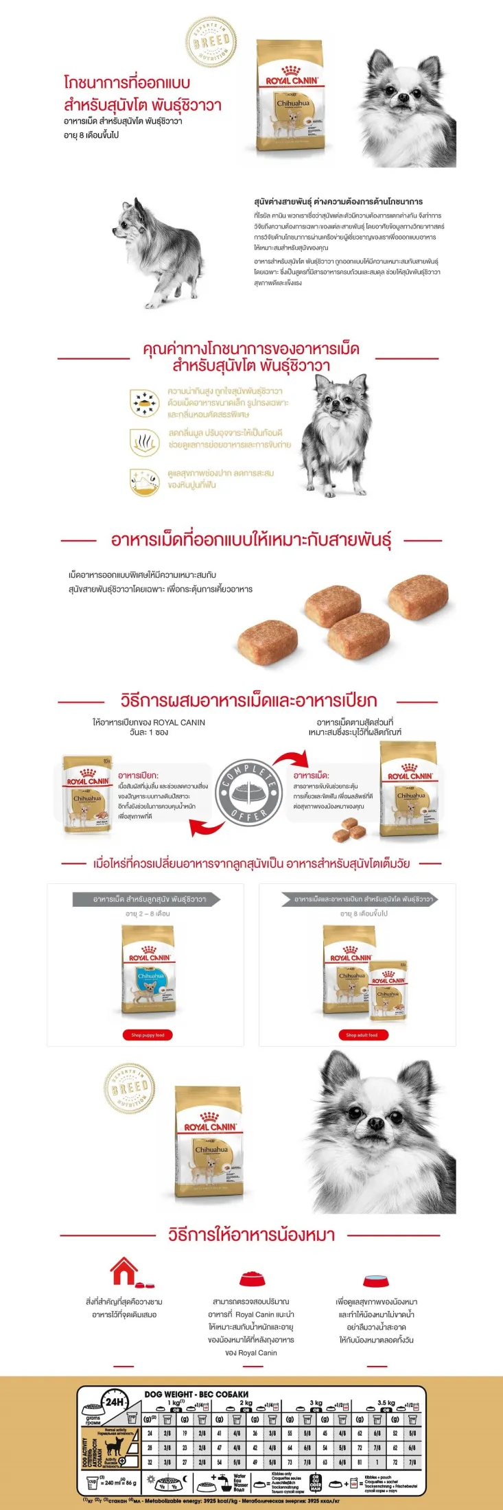 - สำหรับสุนัขพันธุ์ชิวาวา อายุ 8 เดือนขึ้นไป