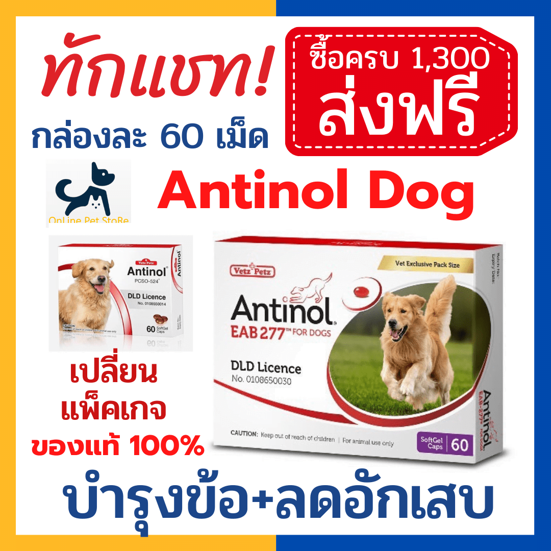 F544 [1 กล่อง] หมดอายุ 2/25 +บำรุง ข้อ+ Antinol สุนัข 60 เม็ด อาหารเสริมบำรุง ข้อ สกัดจากหอยแมลงภู่นิวซีแลนด์