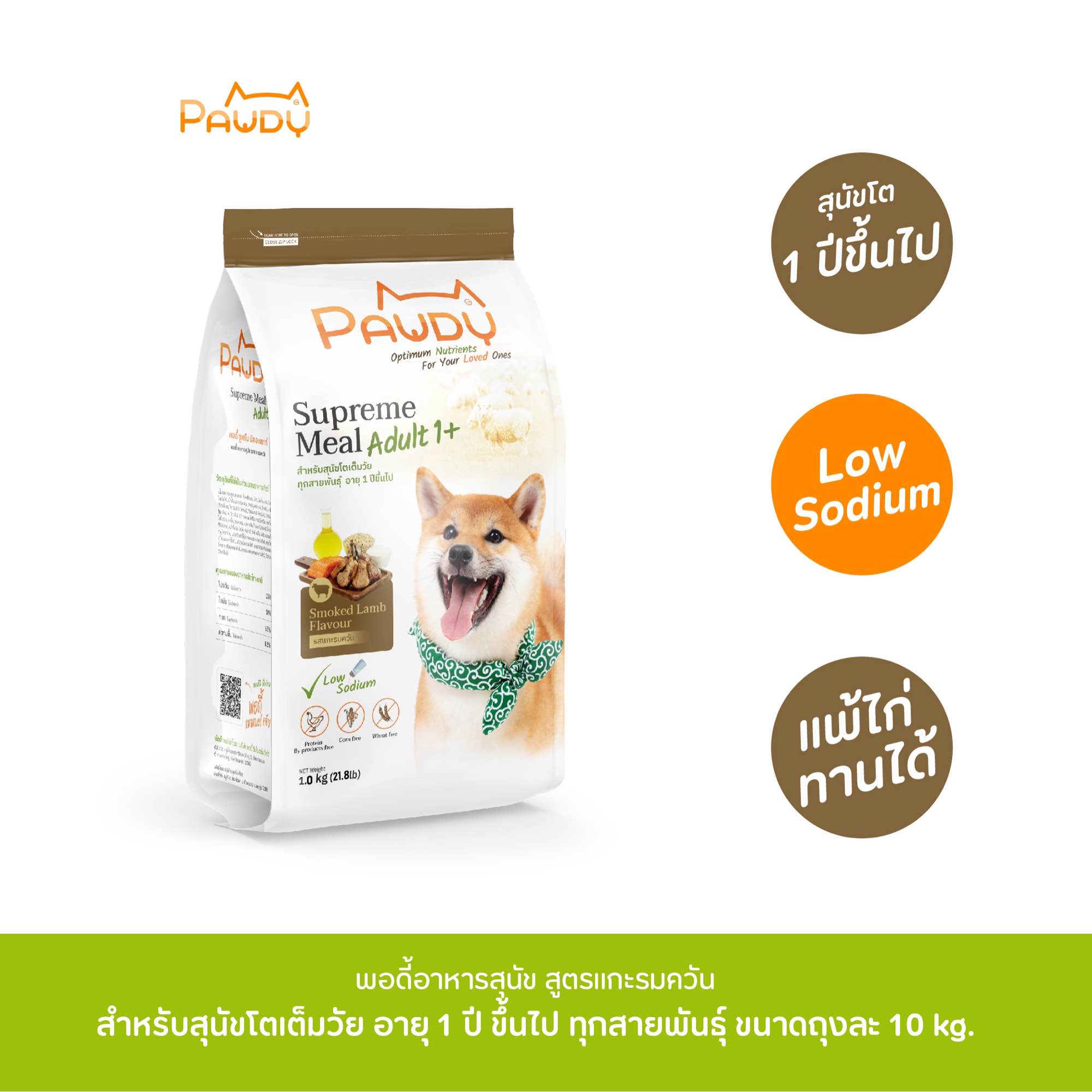 F564 อาหารสุนัข Pawdy เกรดพรีเมียม สูตรสุนัขโต รสแกะรมควัน (ถุงละ 10 kg 1 ถุง)