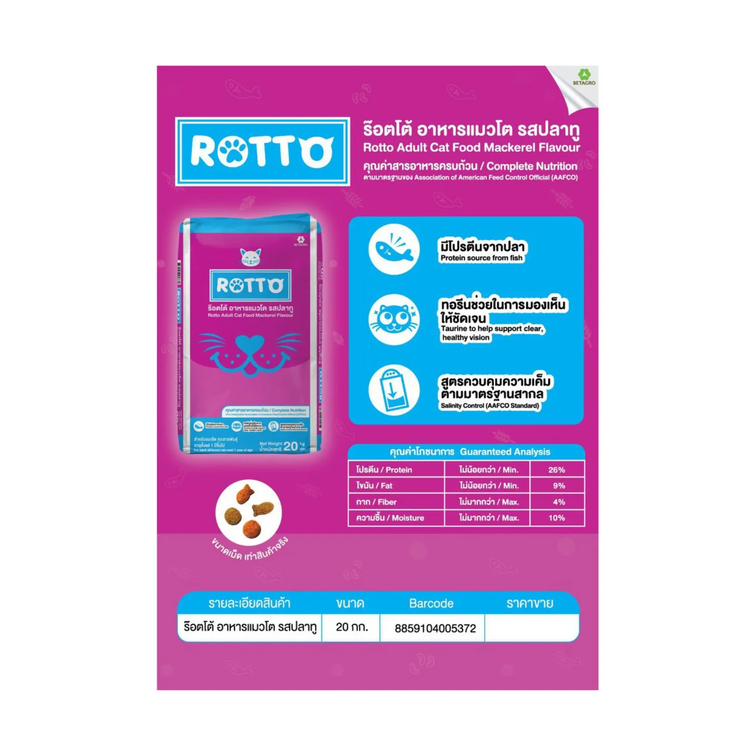 - Rotto (ร๊อตโต) อาหารแมวแบบแห้ง ขนาด 20 กก. สำหรับแมวโตทุกสายพันธุ์ สูตร1 รสปลาทู