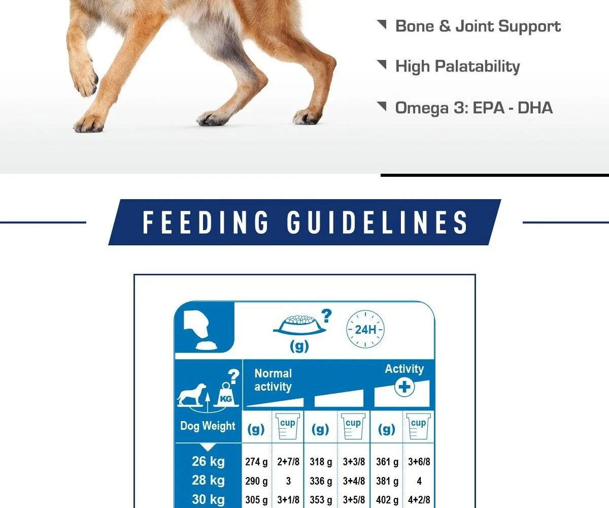Helps support large breed dogs’ healthy bones and joints, which can be placed under stress by body weight.