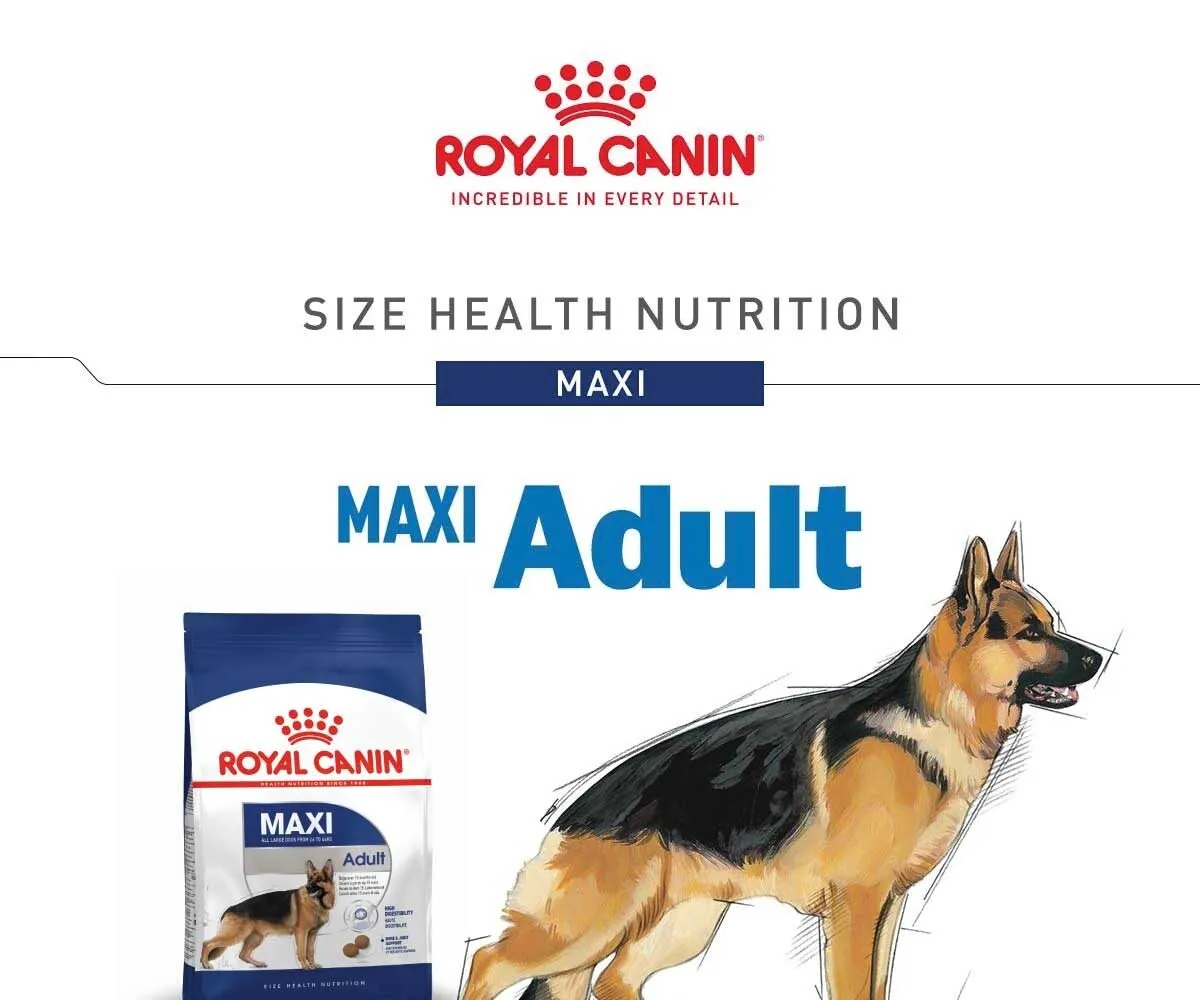 F574 Royal Canin Maxi Adult โรยัล คานิน อาหารเม็ดสุนัขโต พันธุ์ใหญ่ อายุ 15 เดือนขึ้นไป (กดเลือกขนาดได้, Dry Dog Food)