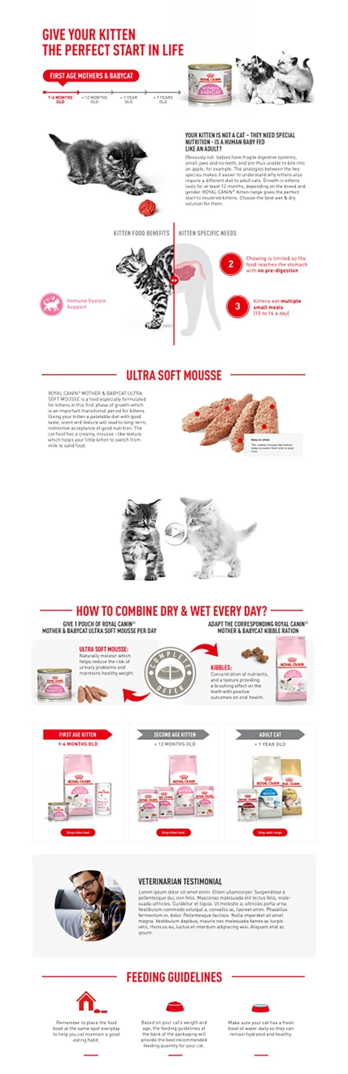 1st AGE EASY STARTFor 1st age kittens, the «mousse» texture of MOTHER & BABYCAT facilitates the transition to solid food.INSTINCTIVELY PREFERREDFormulated to match the optimal Macro Nutritional Profile instinctively preferred by kittens.IMMUNE SYSTEM SUPPORTHelps support the 1st age kitten’s natural defences.