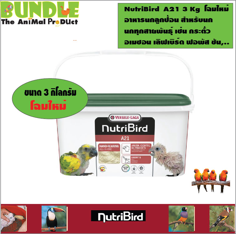- NutriBird A21 3 Kg โฉมใหม่ อาหารนกลูกป้อน สำหรับนก นกทุกสายพันธุ์ เช่น กระตั้ว อเมซอน เลิฟเบิร์ด ฟอพัส ซัน