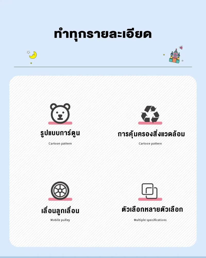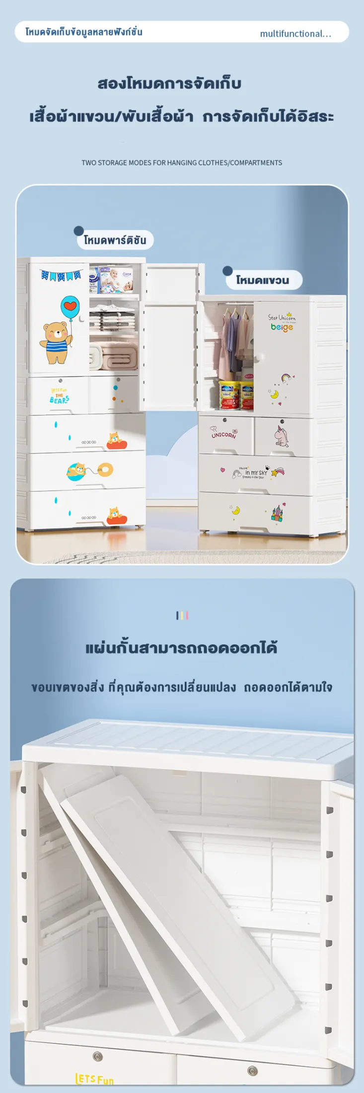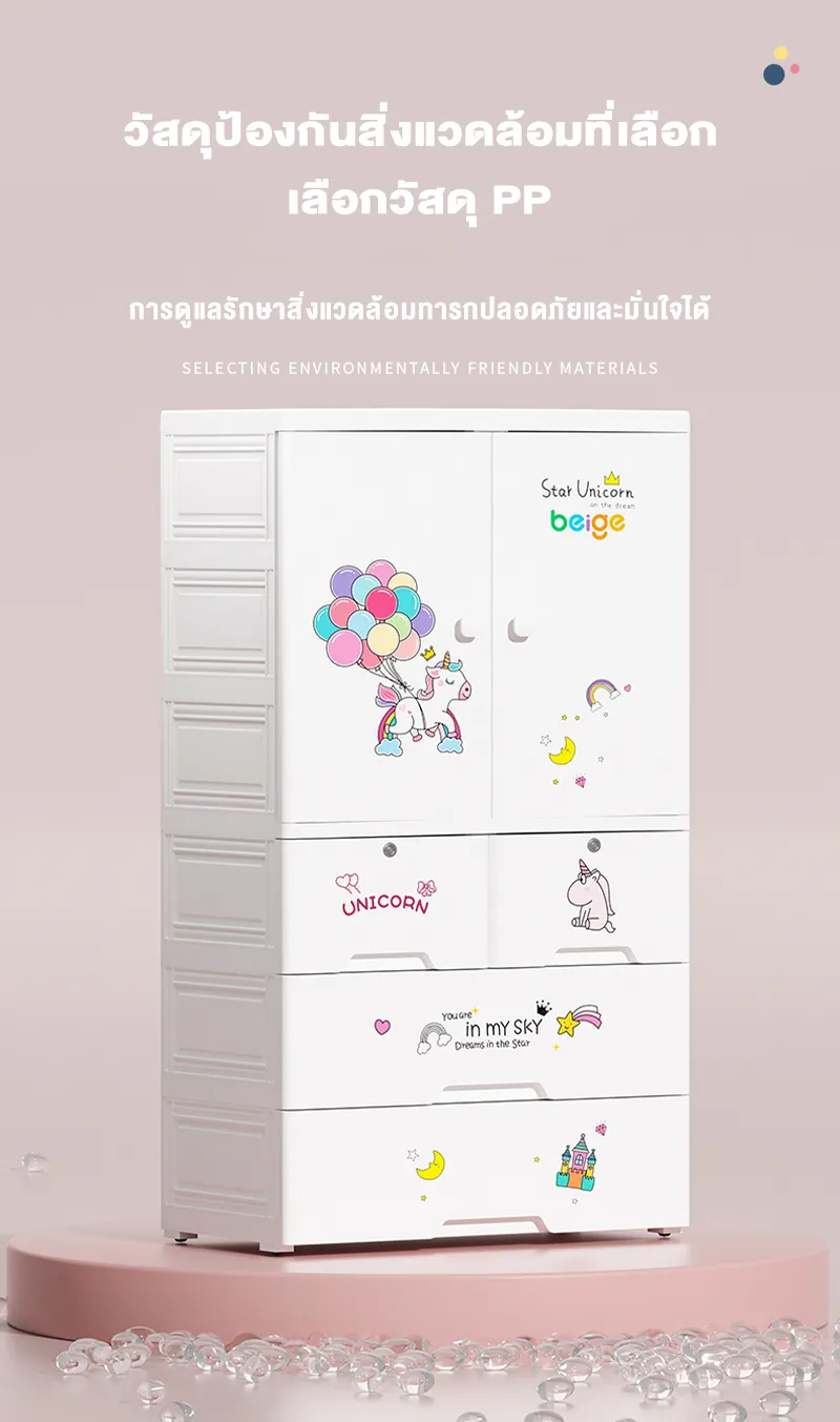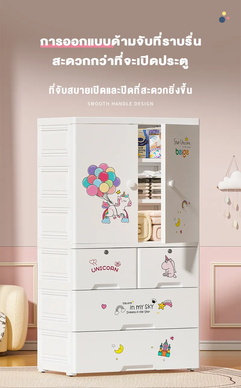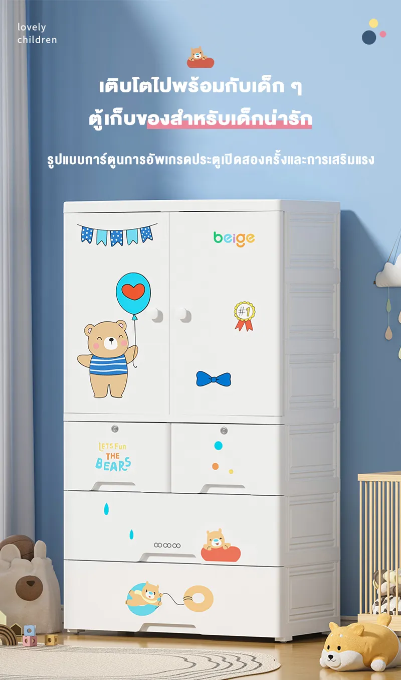 สวยงามและน่ารัก ทำให้เด็กต้องการจัดเรียงอย่างสนุกสนาน เราออกแบบตู้เสื้อผ้าเด็กของเราอย่างละเอียด มีรูปแบบการ์ตูนที่น่ารักและสีสันสดใส ทำให้เด็กอยากมีส่วนร่วมในการจัดเรียงเสื้อผ้าและเป็นกิจกรรมที่ดี