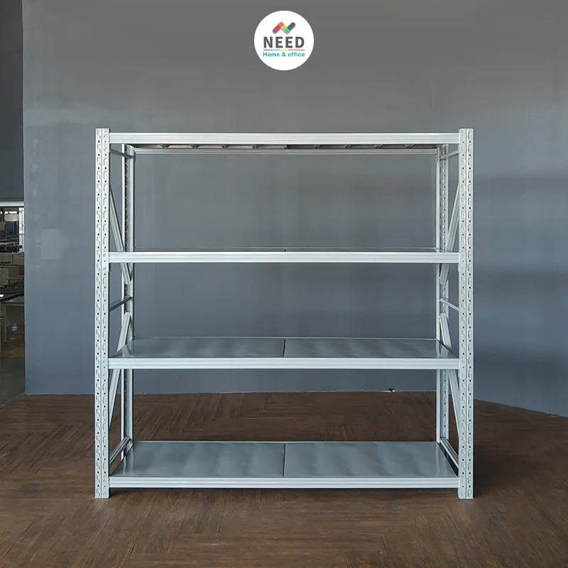– ชั้นวางของในโรงงาน 4 ชั้น- โครงเหล็กฉากขนาดใหญ่ ทำสี แข็งแรง ทนทาน