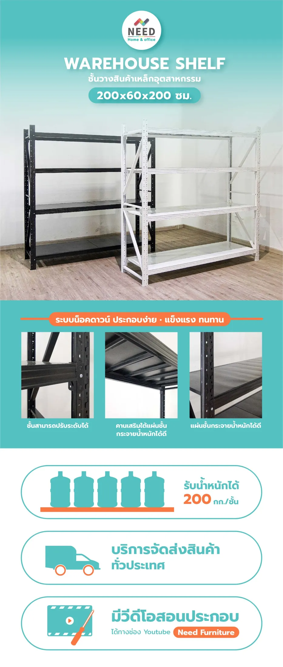 – รับน้ำหนักได้ 200 กิโลกรัม/ชั้น