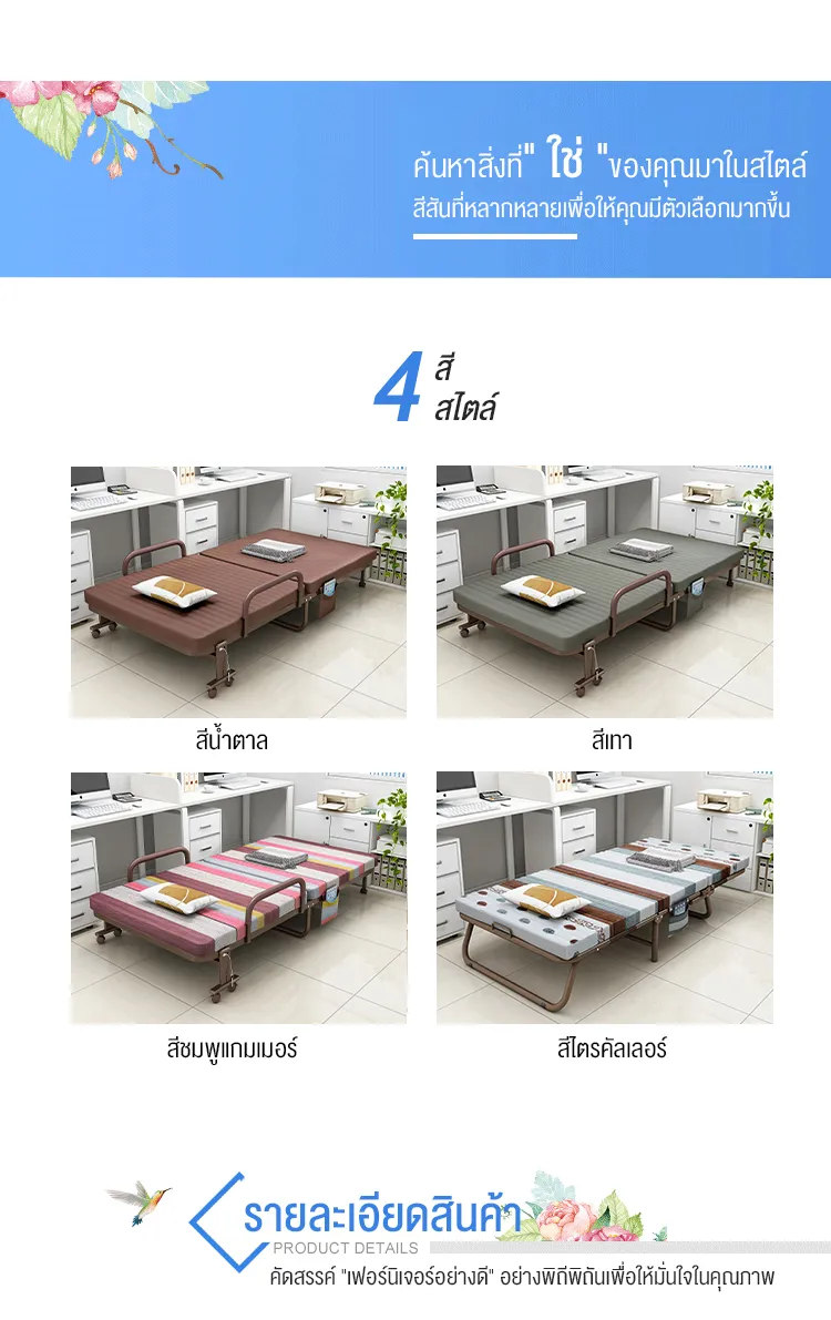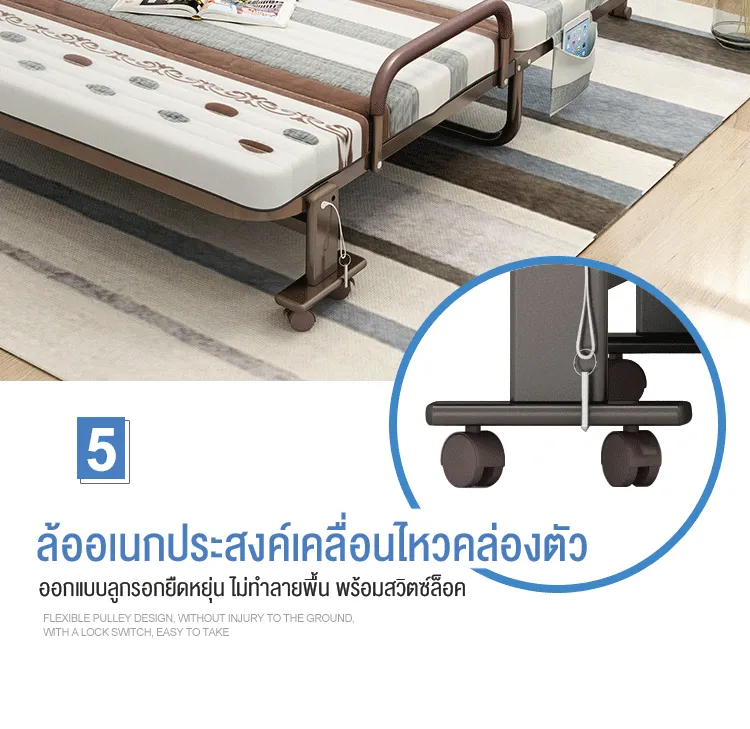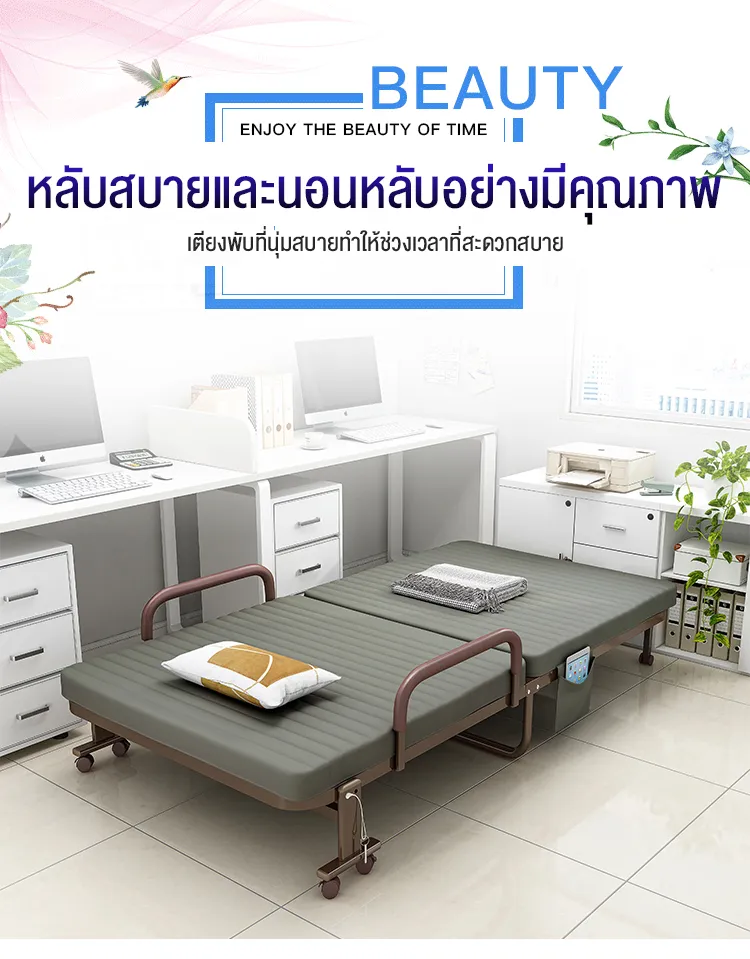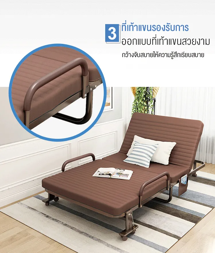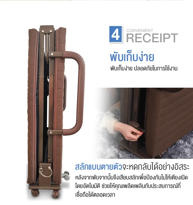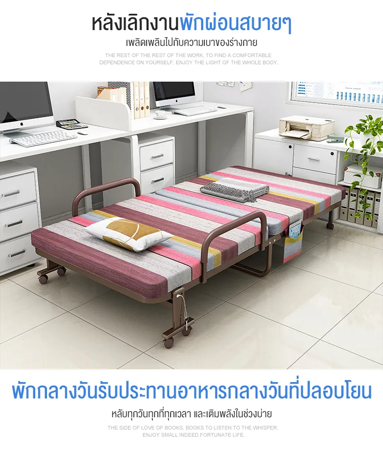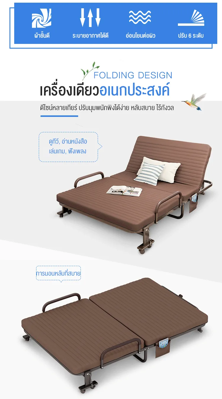 F666 Benbo folding bed เตียงพับได้ หน้ากว้าง 70-120 ซม. ที่นอนหนา พร้อมใช้งาน ไม่ต้องติดตั้ง แถมฟรี ผ้ากันฝุ่นและหมอน sofa bed เตียงนอนพับได้