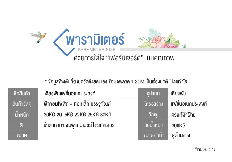 - พับเก็บได้สะดวกจัดเก็บง่ายและไม่มีพื้นที่วาง