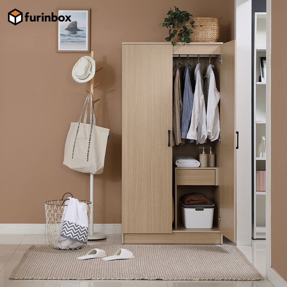 F671 [ส่งฟรีพร้อมติดตั้ง Furinbox ตู้เสื้อผ้า 2 บานประตู รุ่น FEST – สีลายไม้ธรรมชาติ]