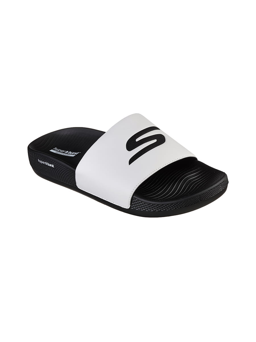 Post-run recovery gets upgraded with more comfort and athletic style in the SKECHERS Hyper Slide – Deriver Men’s Sandals. Features a smooth synthetic upper with HYPER BURST cushioned midsole and Goodyear performance outsole.