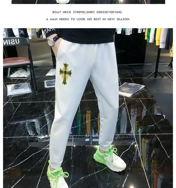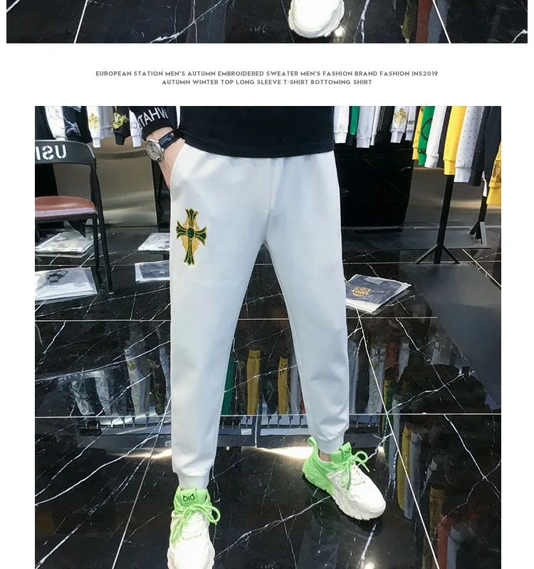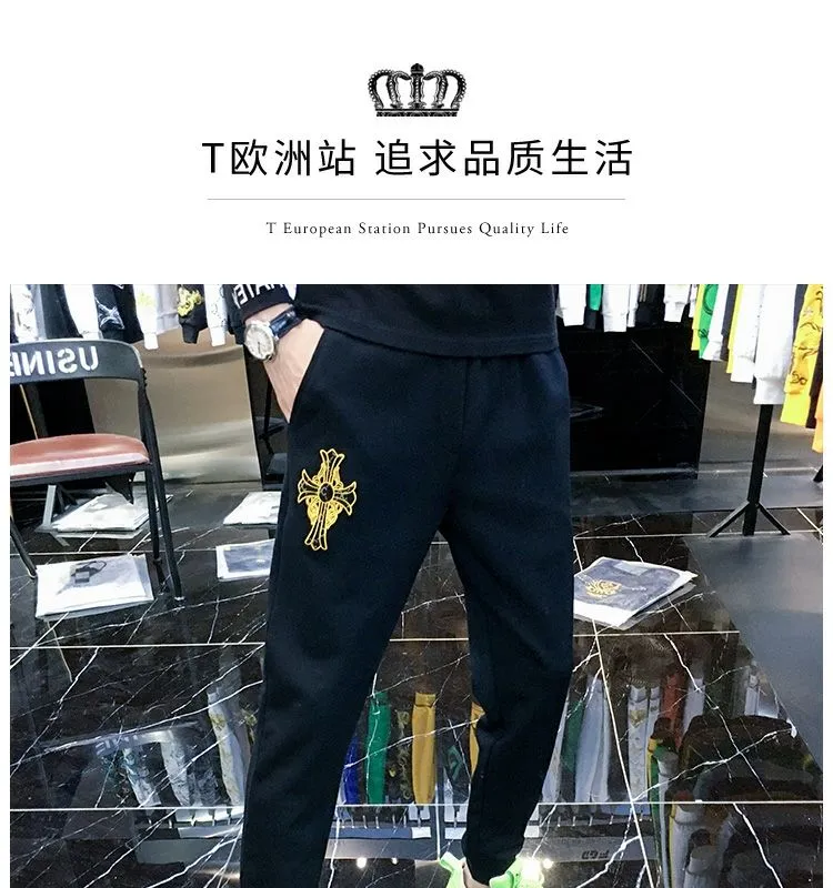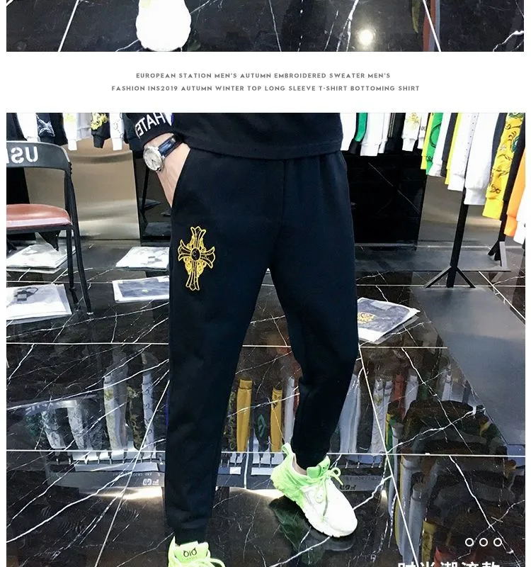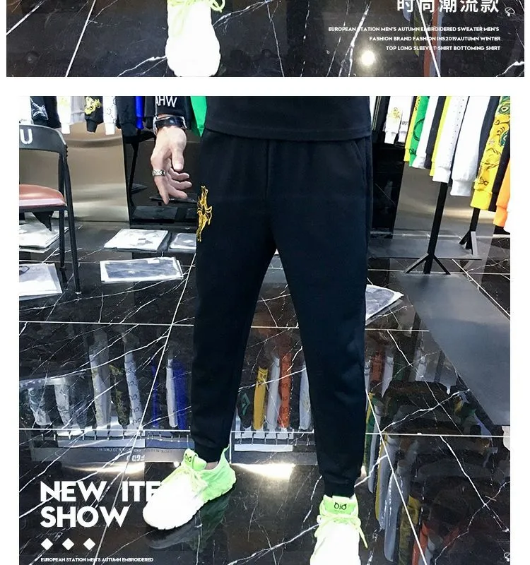 F716 Embroidered Simple Sports Casual Pants Men’s Trendy Brand Trendy Versatile 2023 Autumn New Men’s Leg Pants