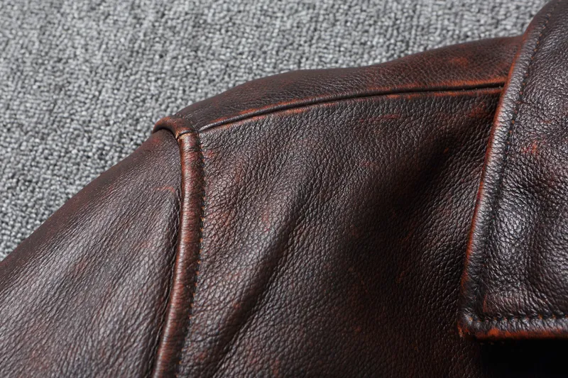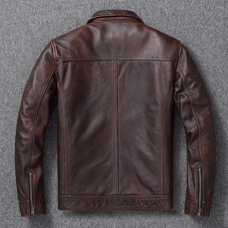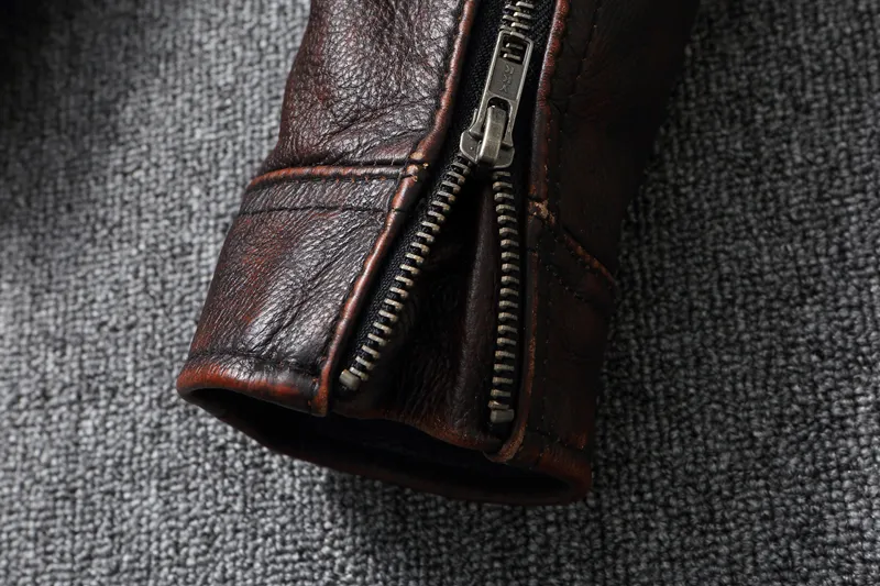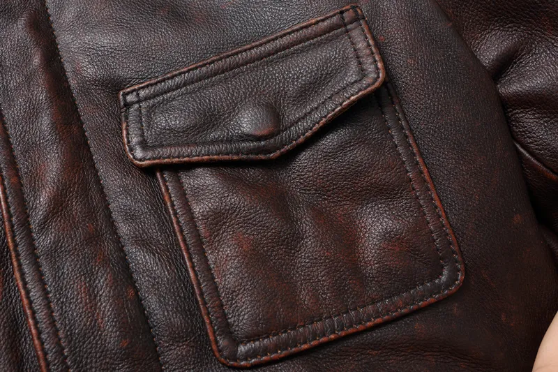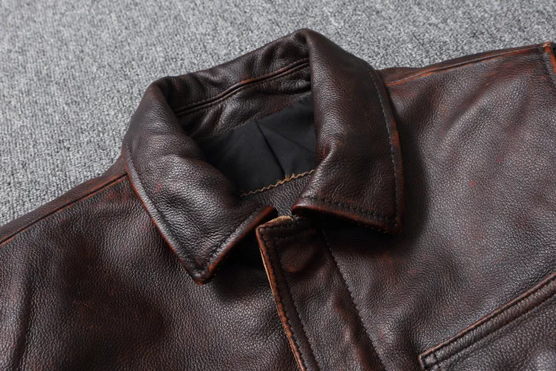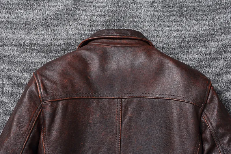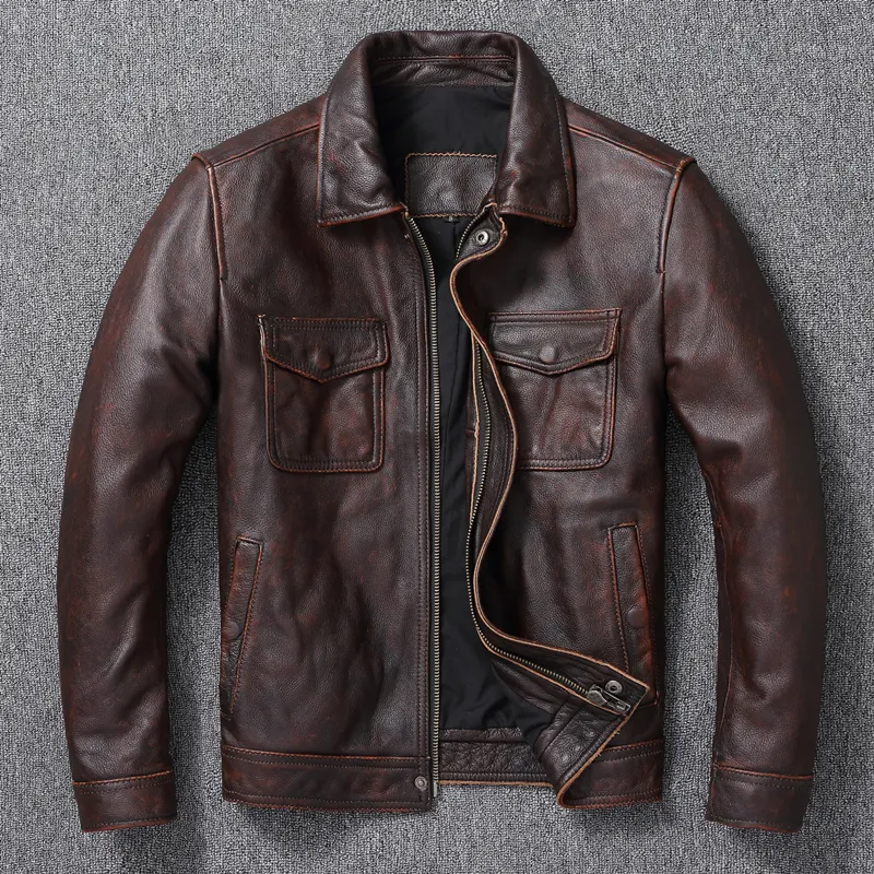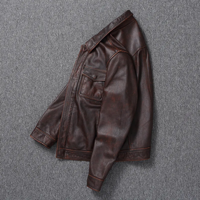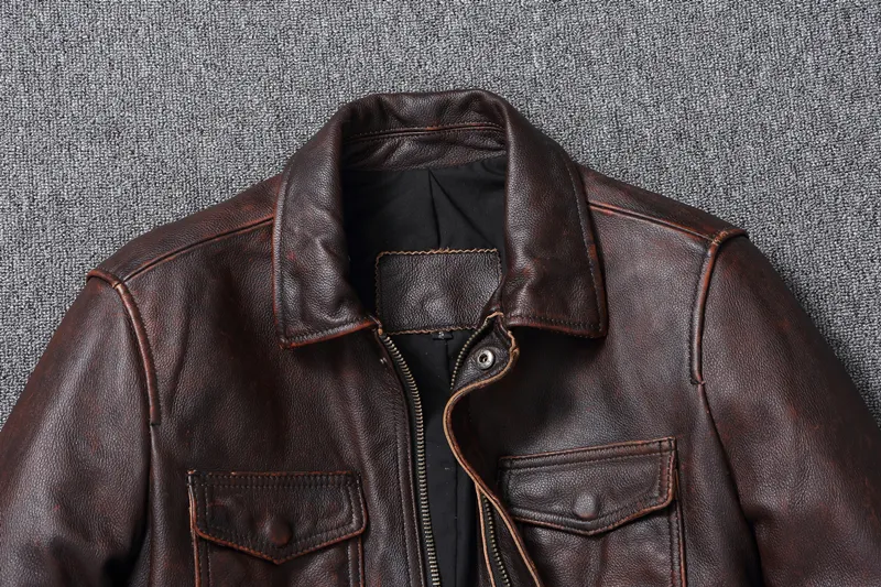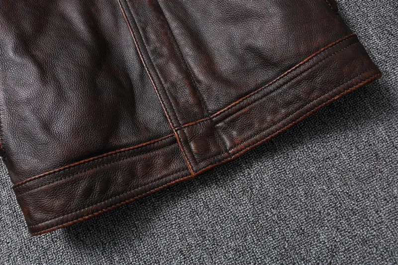 F733 วินเทจสีน้ำตาลสีแดงแจ็คเก็ตหนังแท้ผู้ชาย100 Cowhide แจ็คเก็ตหนังธรรมชาติผู้ชายหนังฤดูใบไม้ร่วงเสื้อผ้าเสื้อแจ็คเก็ตวัว