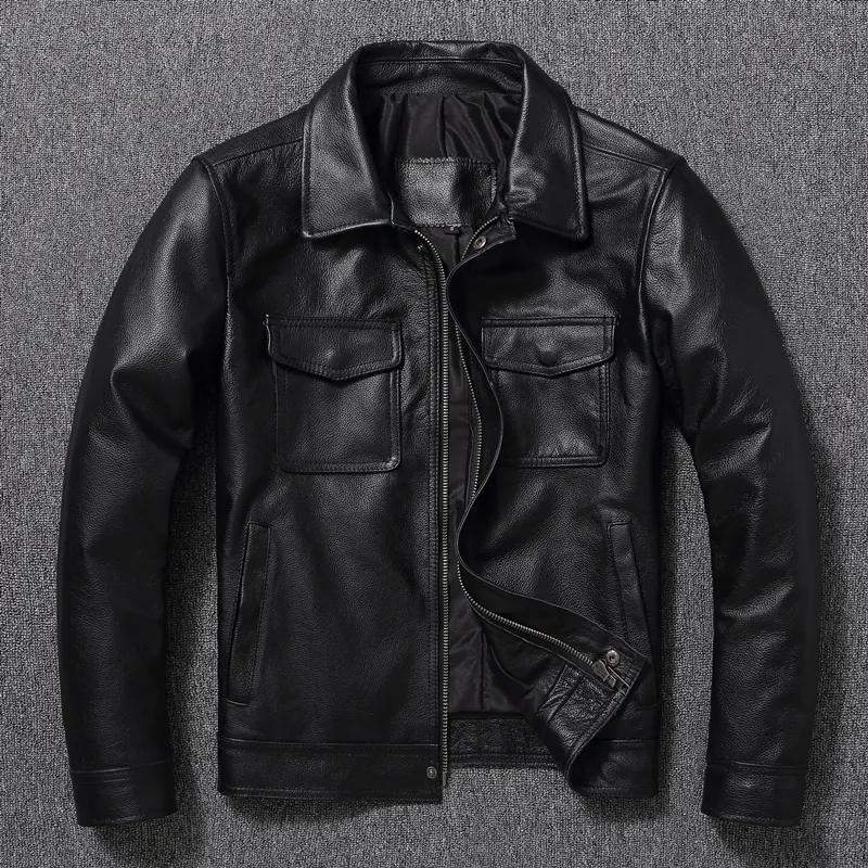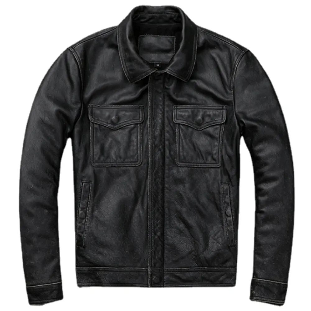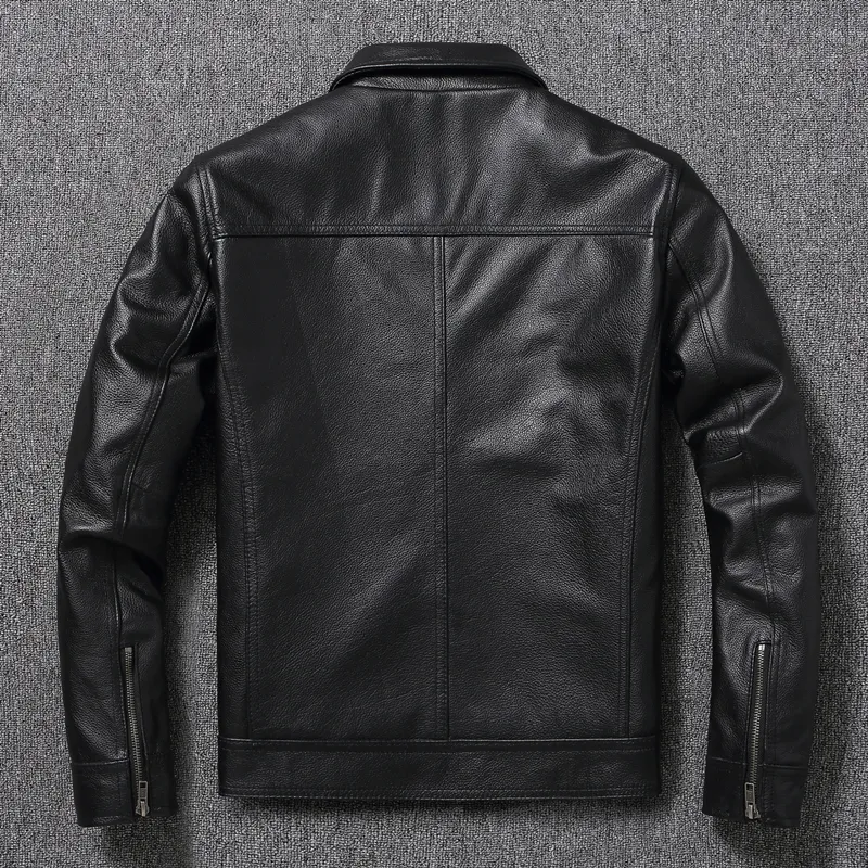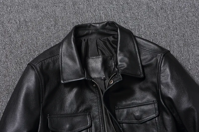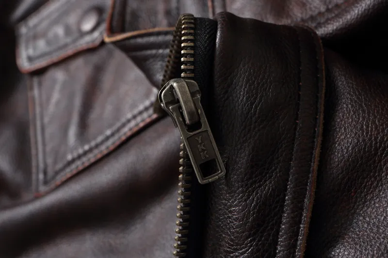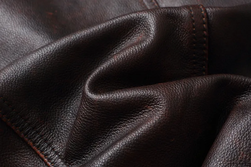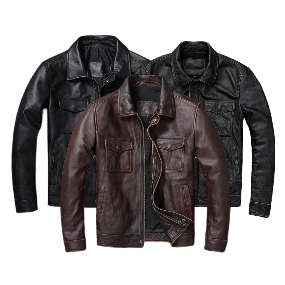 F733 วินเทจสีน้ำตาลสีแดงแจ็คเก็ตหนังแท้ผู้ชาย100 Cowhide แจ็คเก็ตหนังธรรมชาติผู้ชายหนังฤดูใบไม้ร่วงเสื้อผ้าเสื้อแจ็คเก็ตวัว