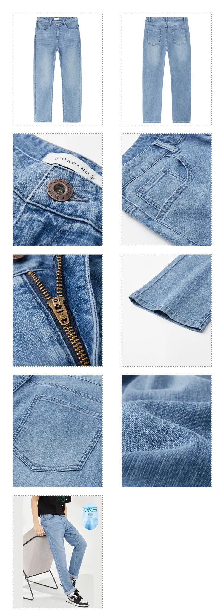 F784 GIORDANO Men Jeans High-Tech Ice Jade Cooling Lightweight Summer Denim Jeans Stretch Five-Pocket Casual Denim Pants 18113074