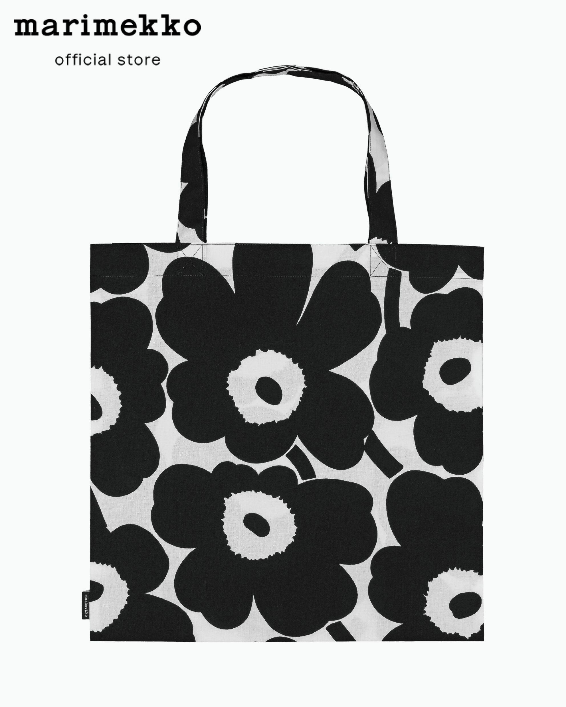 - The lightweight cotton bag is easy to tuck into another bag so that it is always with you. Printed in Helsinki. Our tote bags are sewn using the whole width of the fabric, and therefore their appearance may vary slightly. Each item is unique.Marimekko’s famous poppy pattern Unikko was born in 1964 in a time when the design house’s collections featured mostly abstract prints. Designer Maija Isola wanted to create something interesting from this organic theme and designed an entire range of floral prints. Today, the iconic flower represents creativity.Available sizes: 44x43Length: 43.00 cmWidth: 44.00 cmPattern: Pieni unikkoPattern Designer: Maija ja Kristina IsolaDesigner: MarimekkoColor: black, white