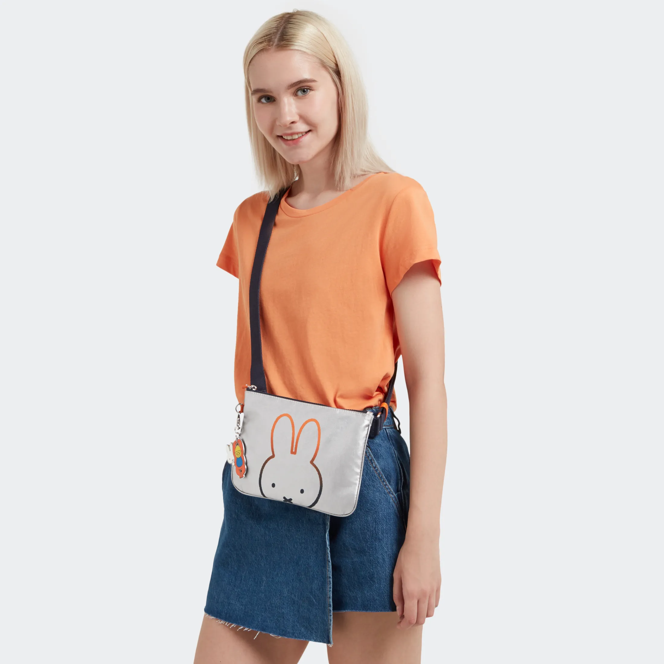 The cute crossbody bag “May Bag” with silver metallic Miffy’s face is an excellent item that can be detached with a snap button and can be used as a pouch. Comes with a Kipling x miffy collaboration limited monkey charm.
