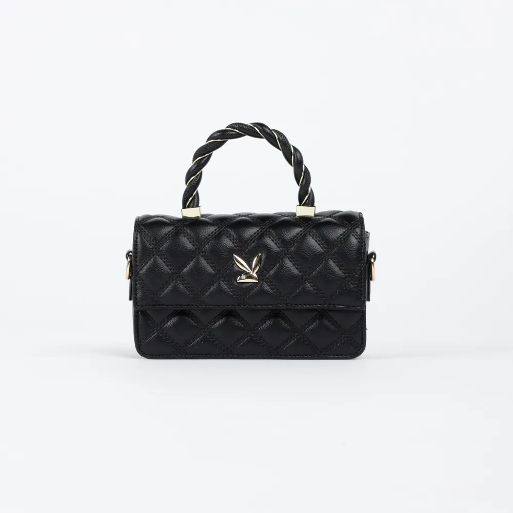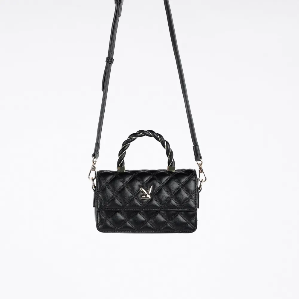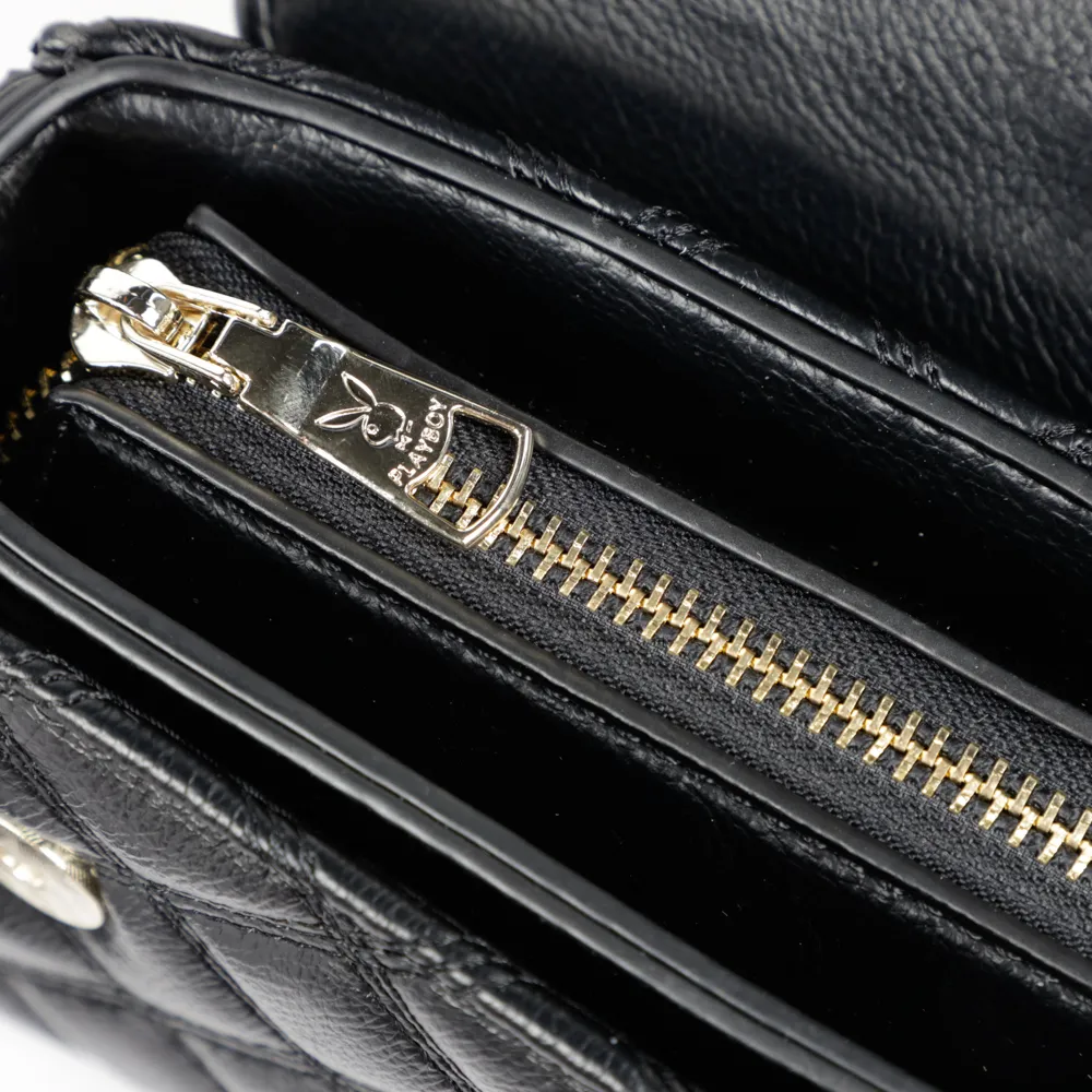 F885 PLAYBOY กระเป๋าสะพายข้าง ลิขสิทธิ์แท้ รุ่นST-BS214PB049 ดีไซน์บุนวมทั้งใบ หูกระเป๋าตั้งลายถัก มี2สี สีดำและสีขาว