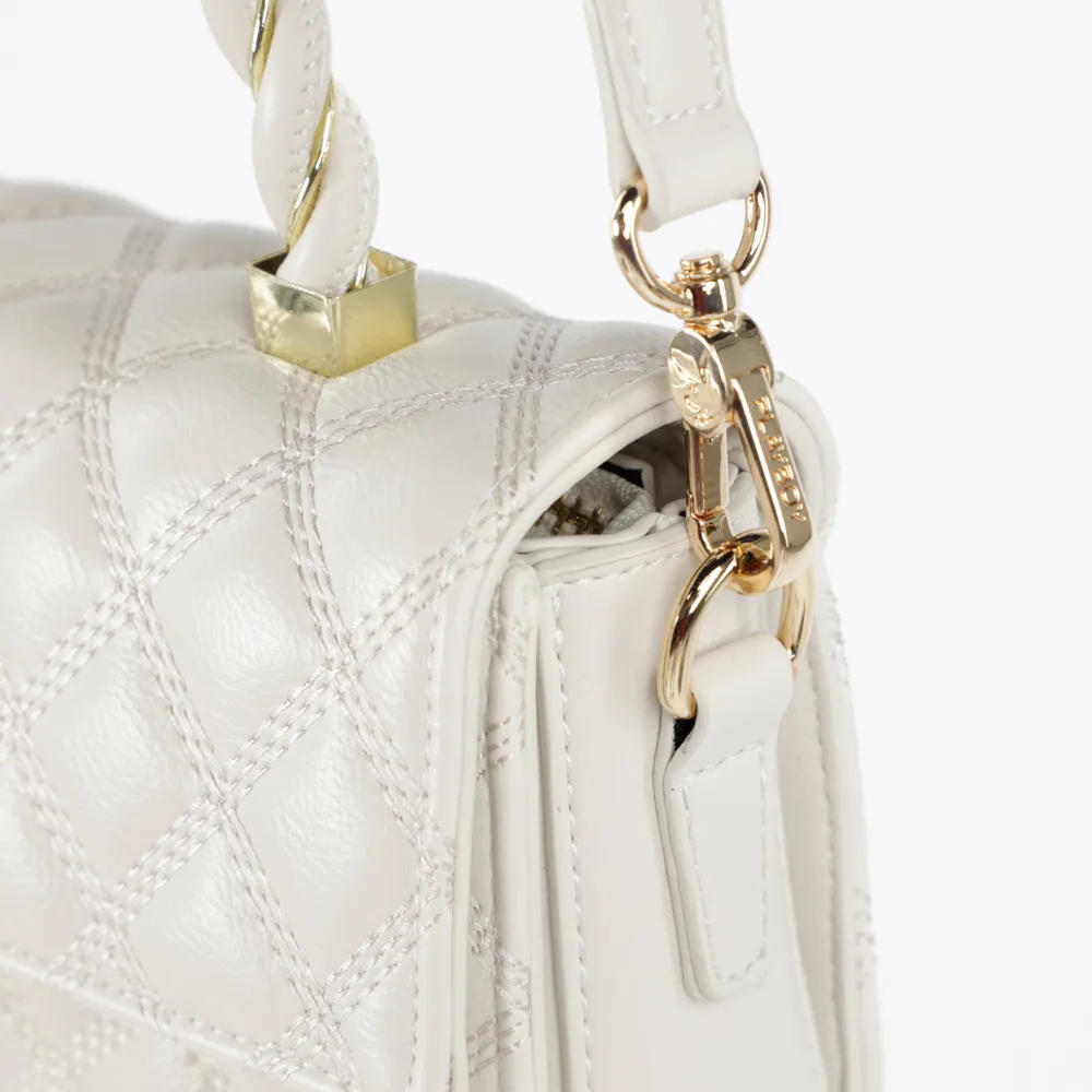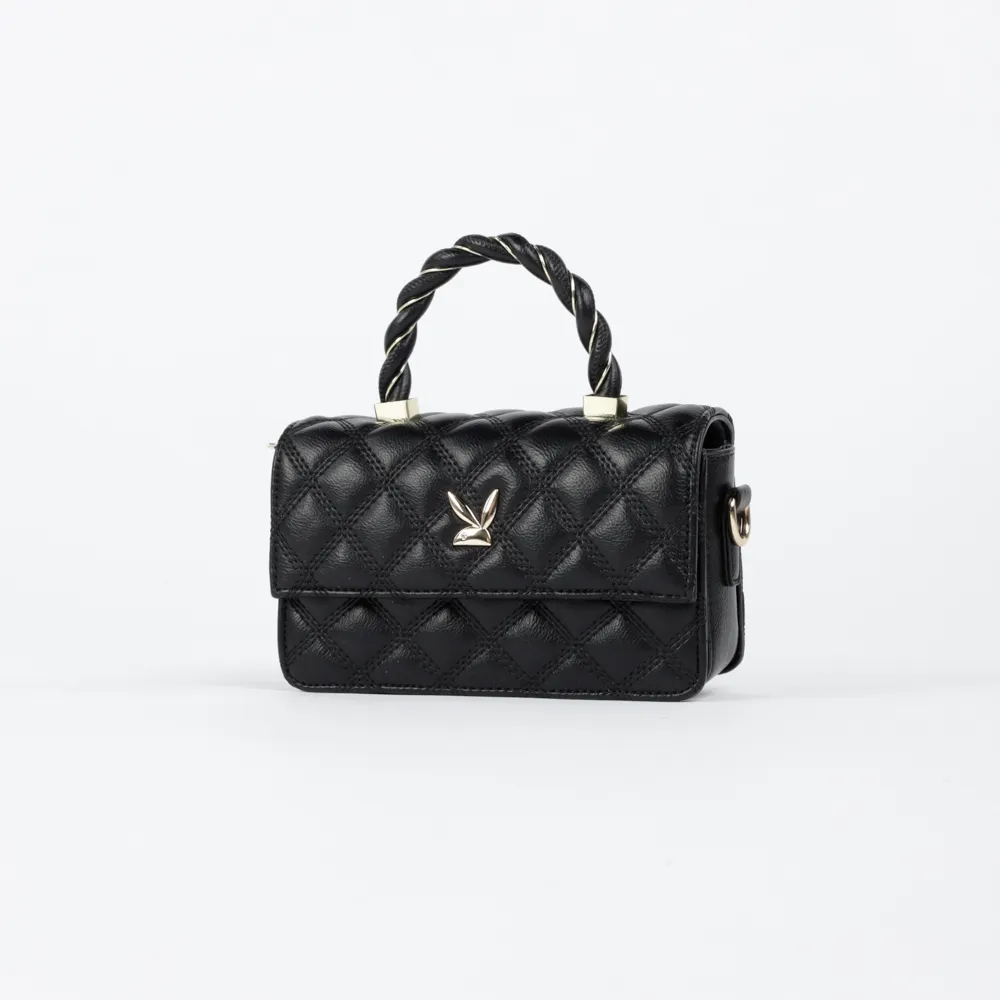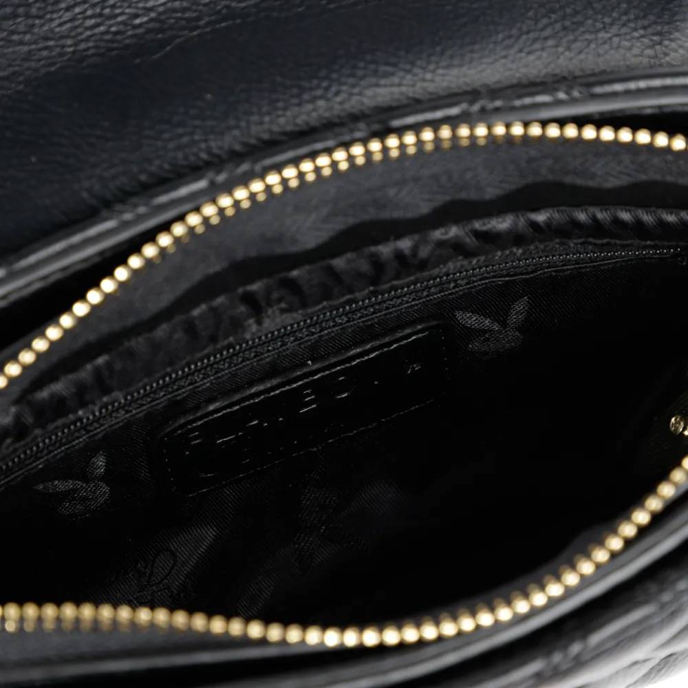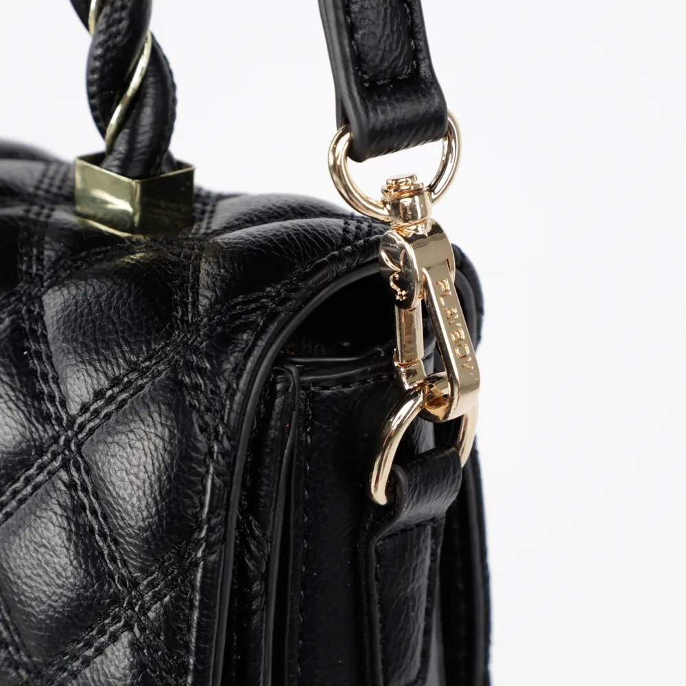 F885 PLAYBOY กระเป๋าสะพายข้าง ลิขสิทธิ์แท้ รุ่นST-BS214PB049 ดีไซน์บุนวมทั้งใบ หูกระเป๋าตั้งลายถัก มี2สี สีดำและสีขาว