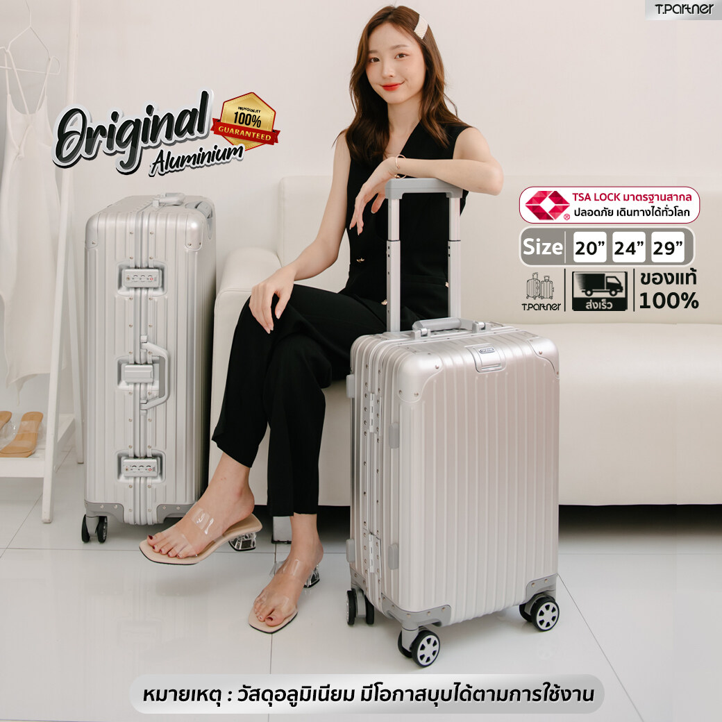 F896 Tpartner กระเป๋าเดินทาง ขนาด 20 24 และ 29 นิ้ว กระเป๋าเดินทางล้อลาก รุ่นOriginal Aluminium วัสดุอลูมิเนียมแท้ทั้งใบ100 % แข็งแรง ทนทาน รับประกันฟรี 1 ปี