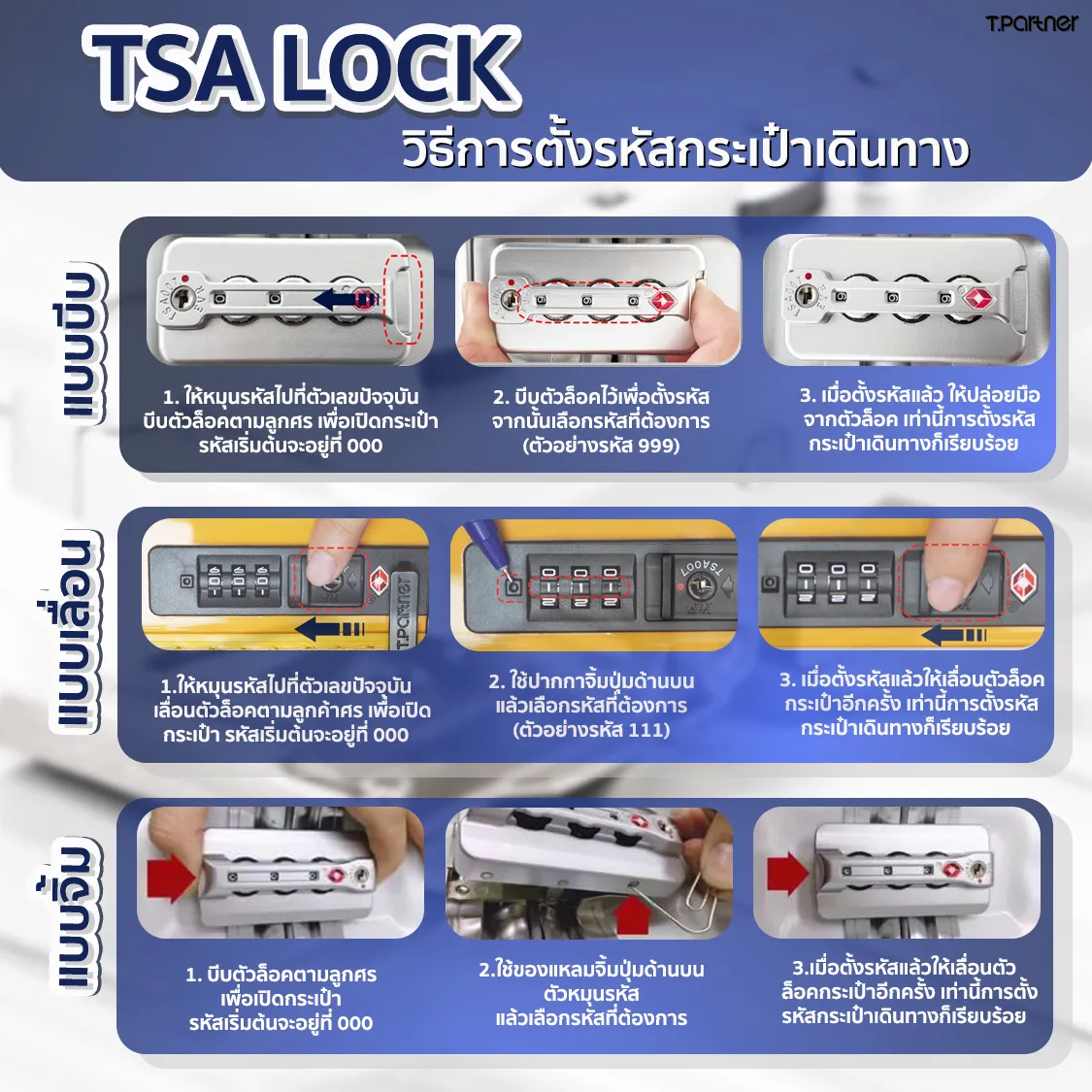► ระบบ TSA Lock  ตามมาตรฐานสากลอเมริกา ตั้งล็อคได้ด้วยรหัส 3 หลัก