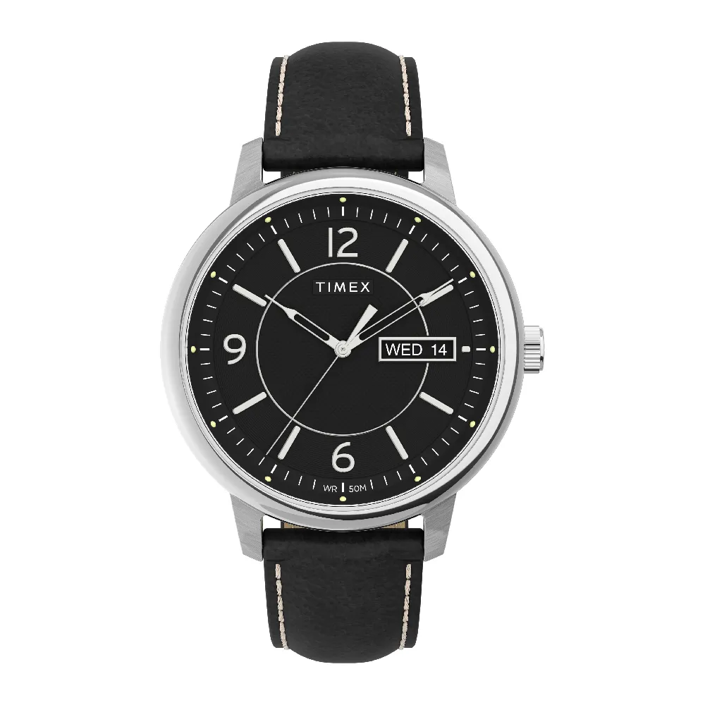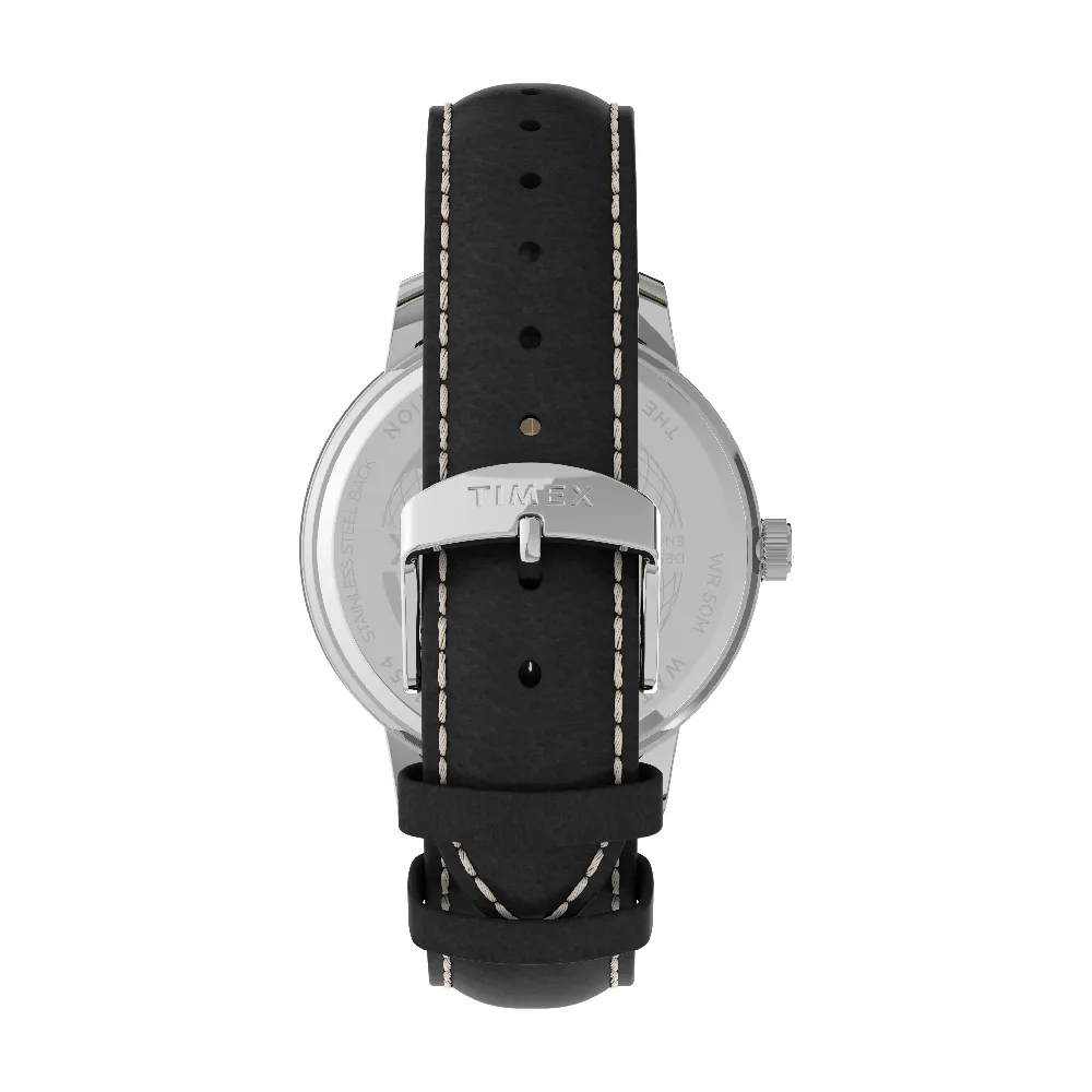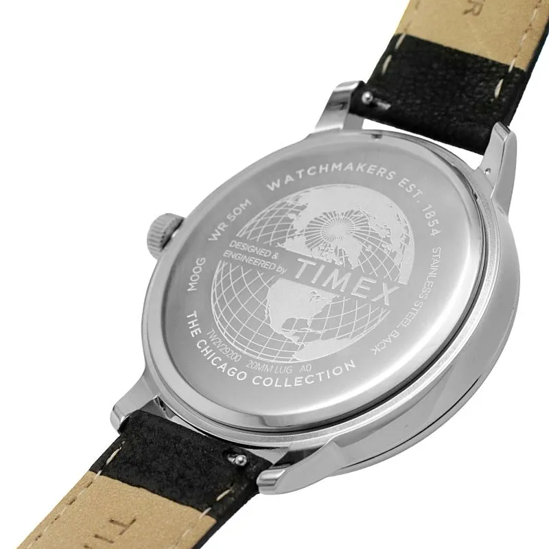 Timex TW2V29200 TREND CHICAGO นาฬิกาข้อมือผู้ชาย สายหนัง สีดำ หน้าปัดสีดำ