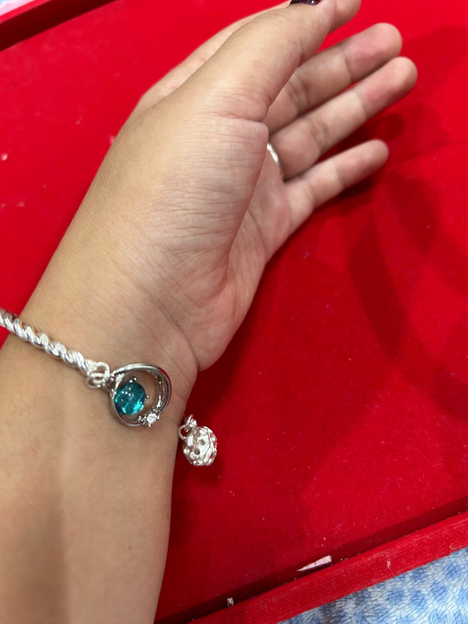 F957 กําไลเงินแท้ มีห้อยหยกน้ำเงิน พลอยเม็ดเล็ก