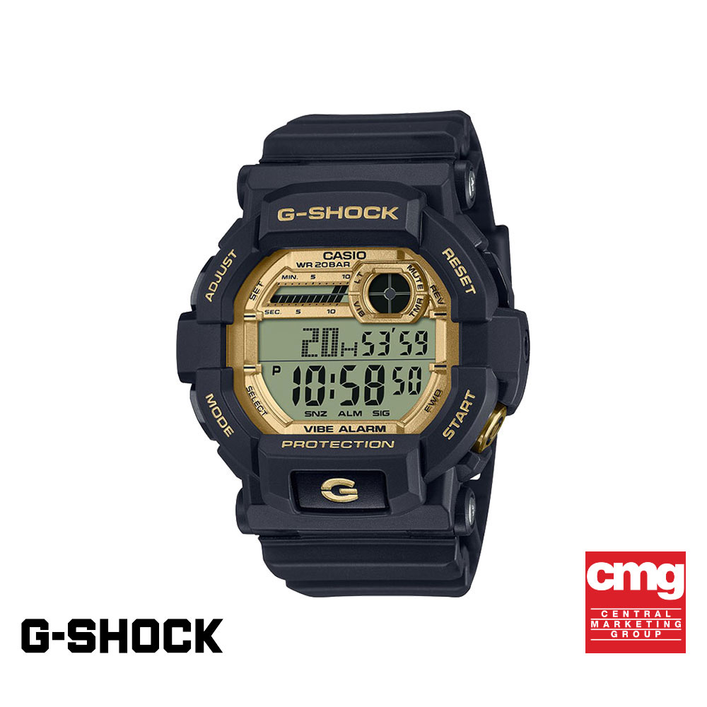 Go from strength to strength with a G-SHOCK in a popular, confident black and gold color scheme. You won’t miss a beat with the GD-350. Easily keep track of time at night and underwater with a timer and alarm function that not only beeps and flashes when the time is up or the alarm is sounding, but vibrates as well. The back of the case is equipped with shock absorbers to improve fit and vibration transmission to the wrist. The upper right indicator window evokes a submarine radar scope, and gold-colored accents add the final touches.