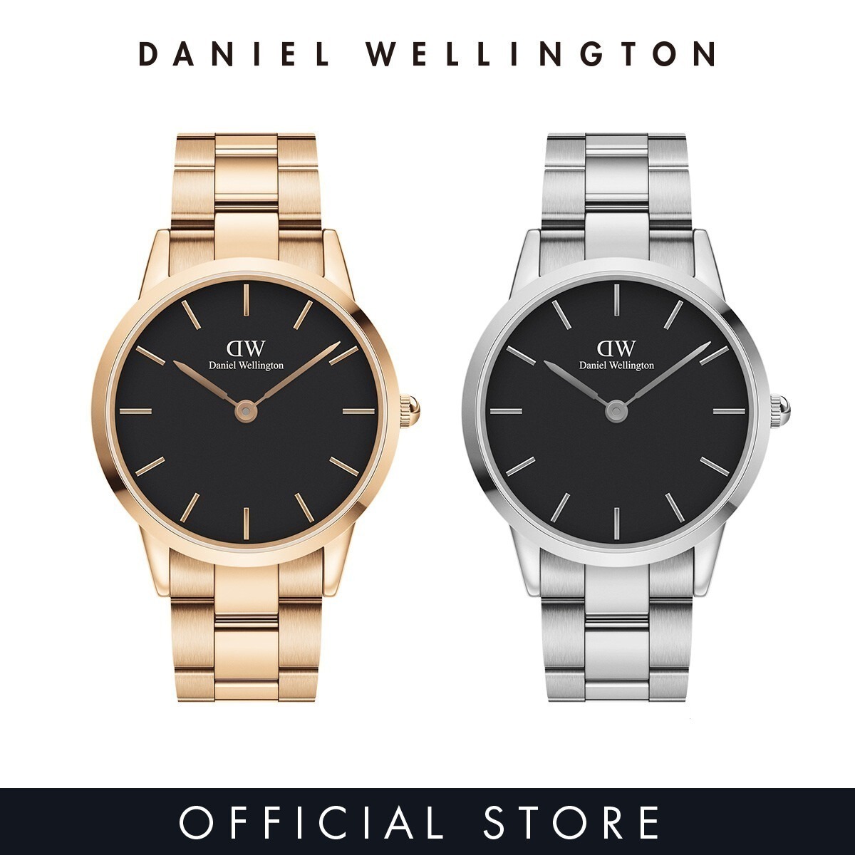 F994 Daniel Wellington Iconic Link 40mm Rose gold / Silver with Black Dial / Watch for Men นาฬิกาผู้ชาย