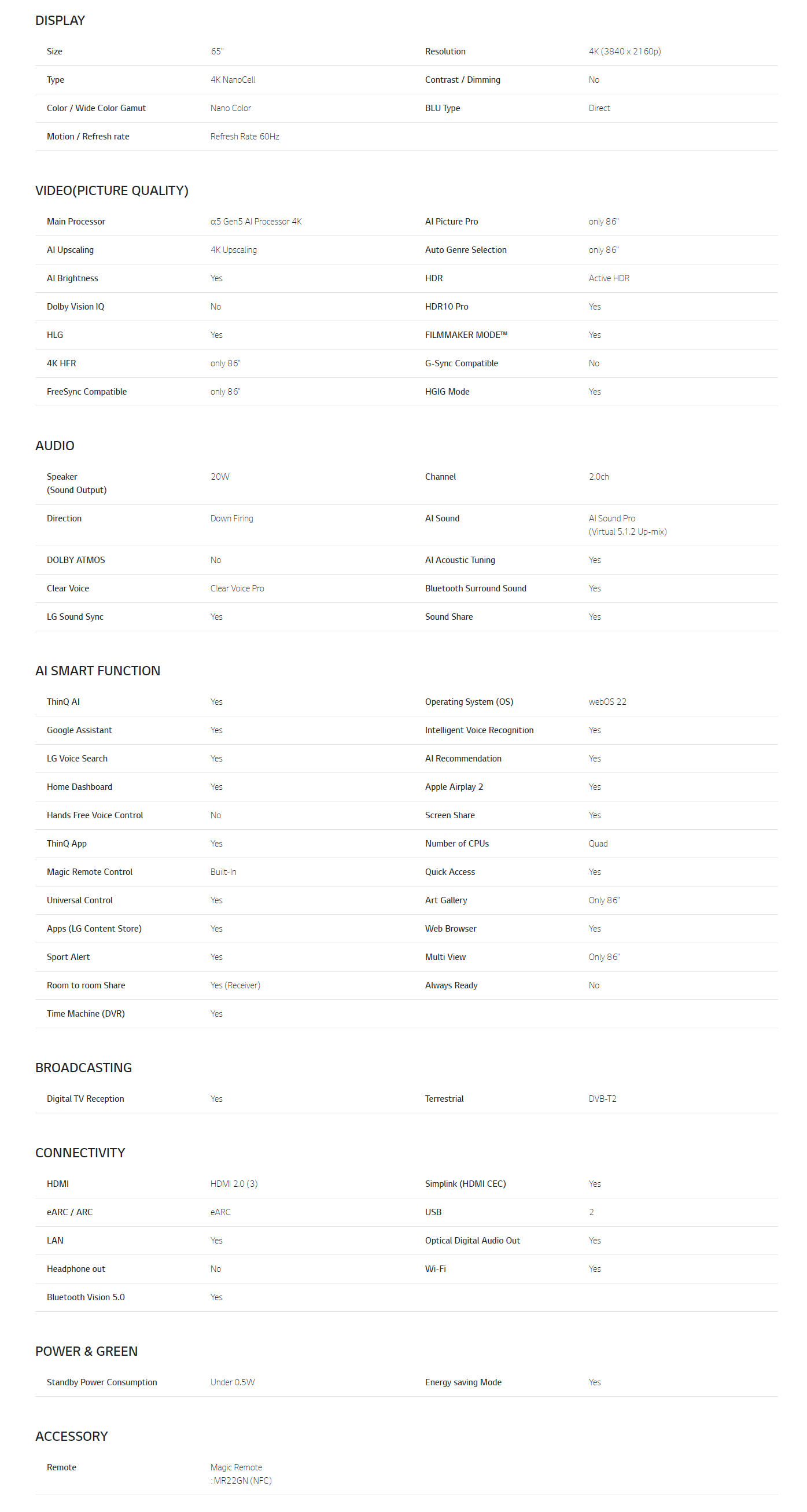 LG NanoCell 4K Smart TV รุ่น 65NANO75SQA| NanoCell l HDR10 Pro l LG ThinQ AI l Google Assistant