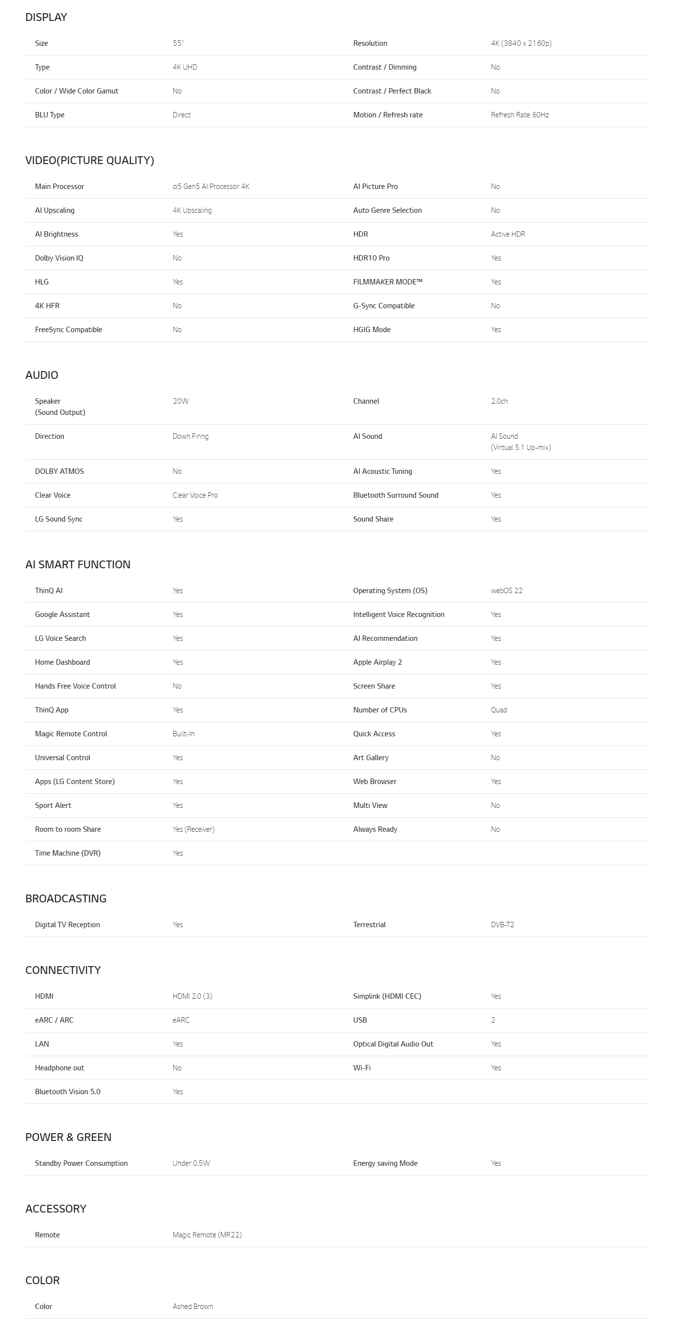 LG UHD 4K Smart TV รุ่น 55UQ8000PSC Real 4K l HDR10 Pro l Google Assistant l Magic Remote