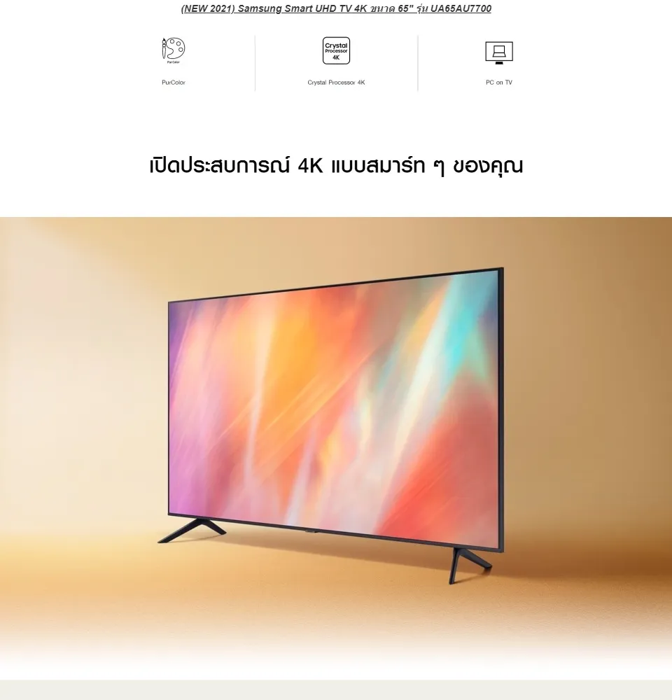 รายละเอียดสินค้า (NEW 2021) Samsung Smart UHD TV 4K ขนาด 65″ รุ่น UA65AU7700