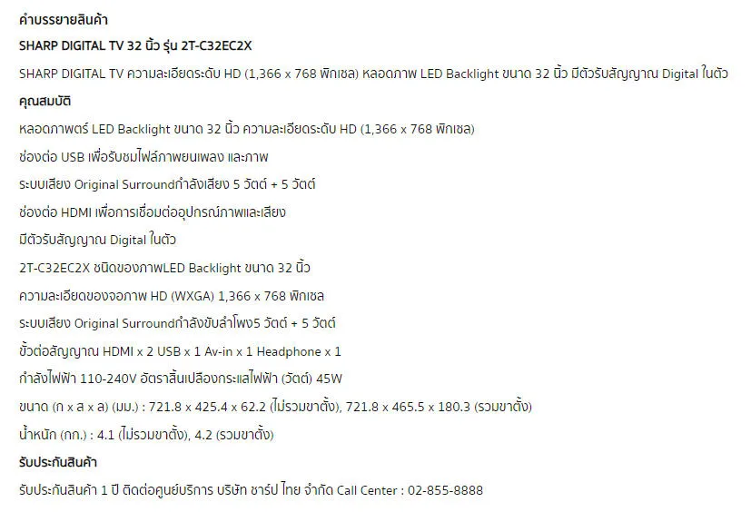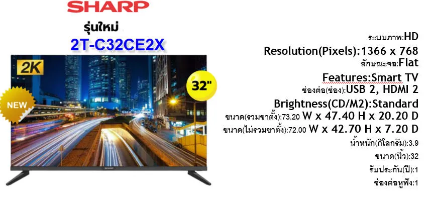 SHARP ทีวี HD LED (32″, digital TV) รุ่น 2T-C32EC2X