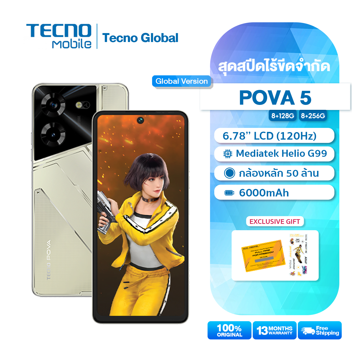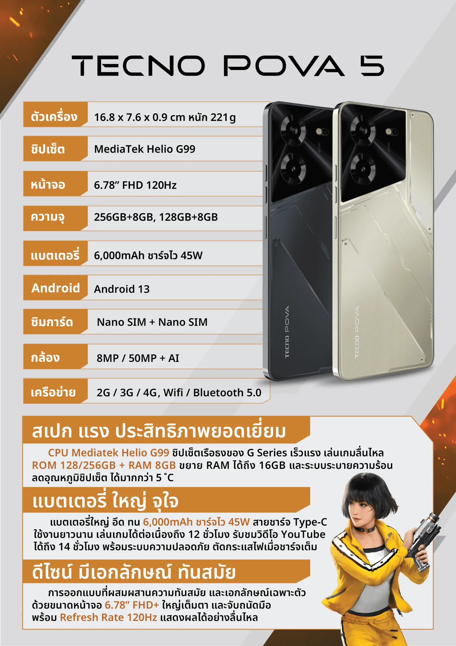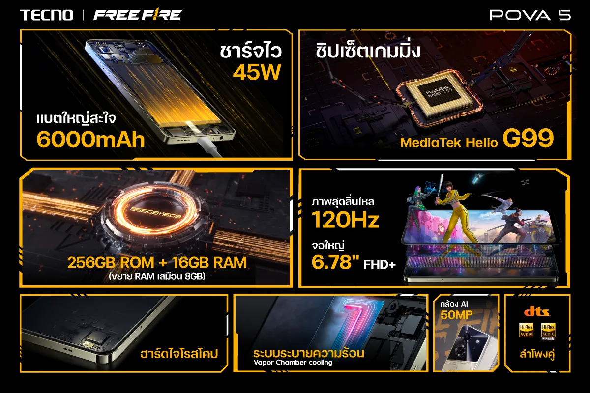 F207 Tecno Mobile Pova 5 (8+256GB)กล้องหน้าและกล้องคู่ แบตเตอร์รี่6000 mAh