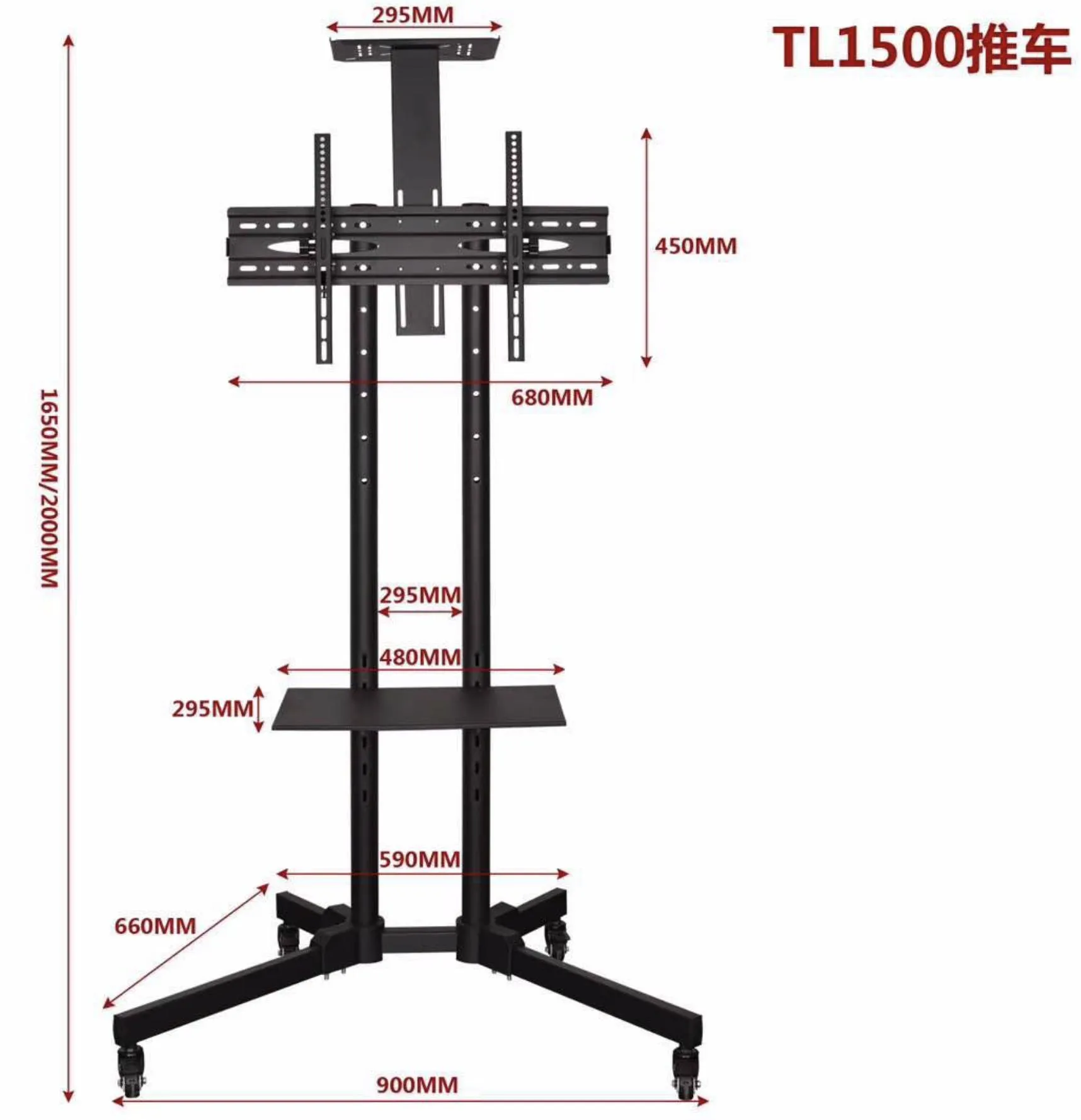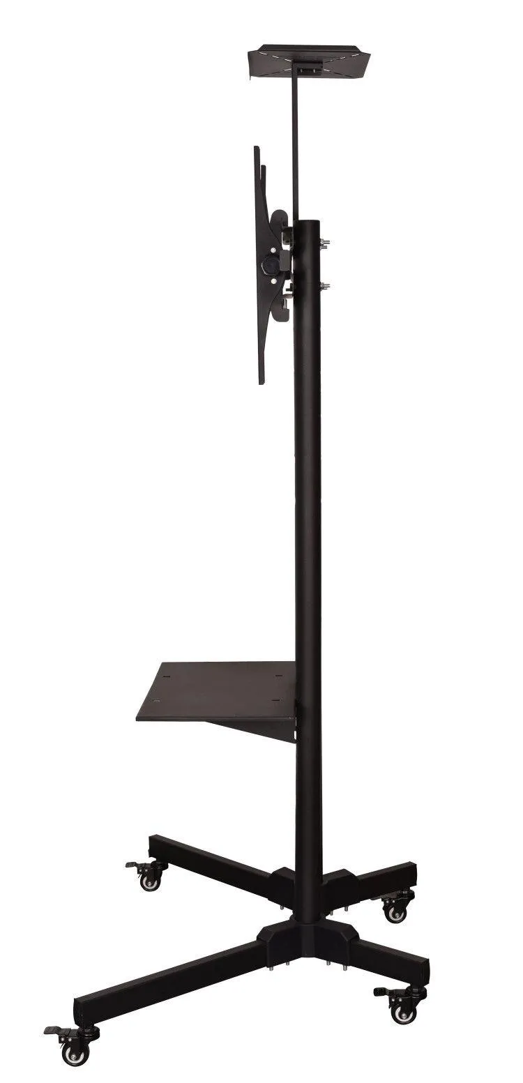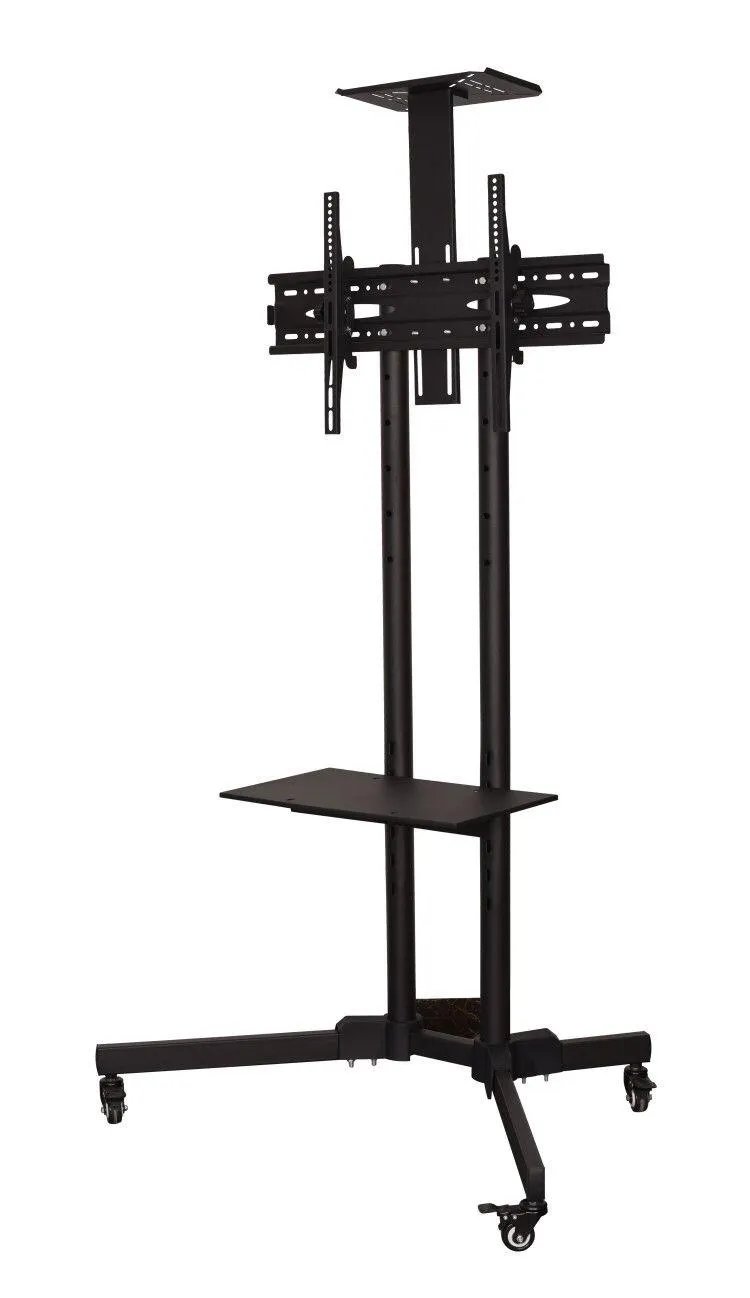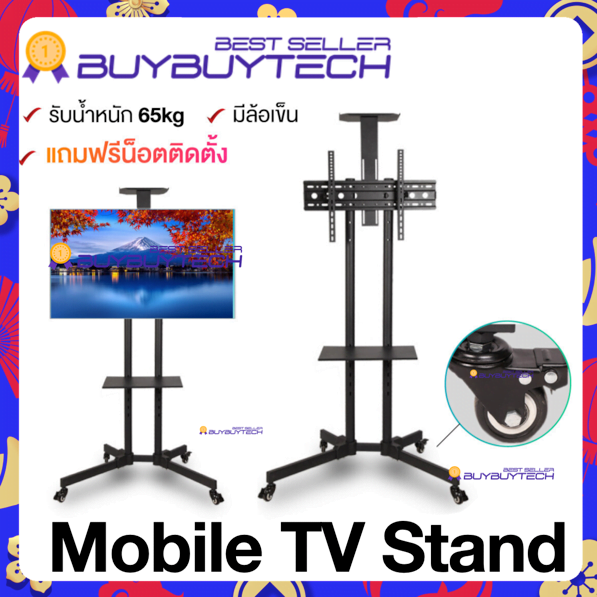 TV Stand ขาตั้งทีวี ขนาด 32”-65” สูง 200 cm . โชว์สินค้า ขาตั้งทีวีเคลื่อนที่ได้ ปรับ ก้ม เงยได้ แบบมี 2 ถาด ด้านหน้า ปรับก้มเงยได้